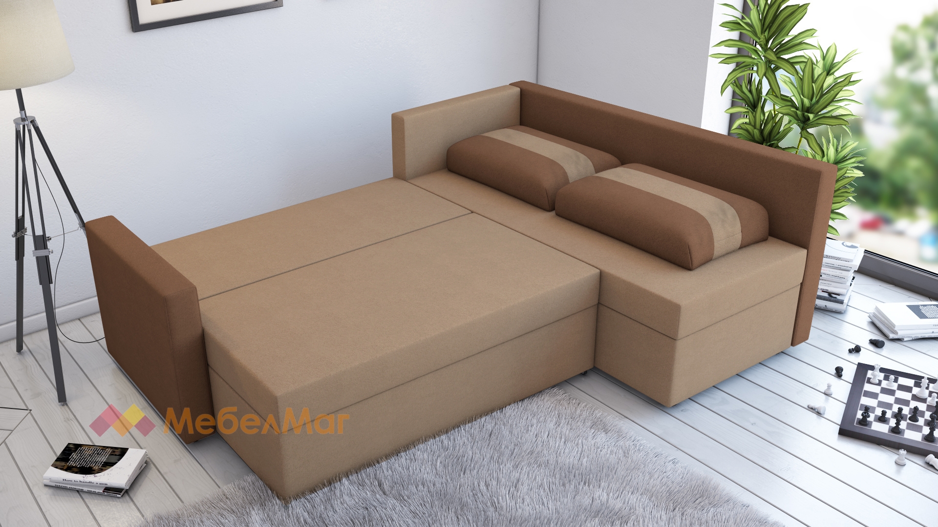 Ъглов диванОливърбежов с кафяво универсален ъгъл