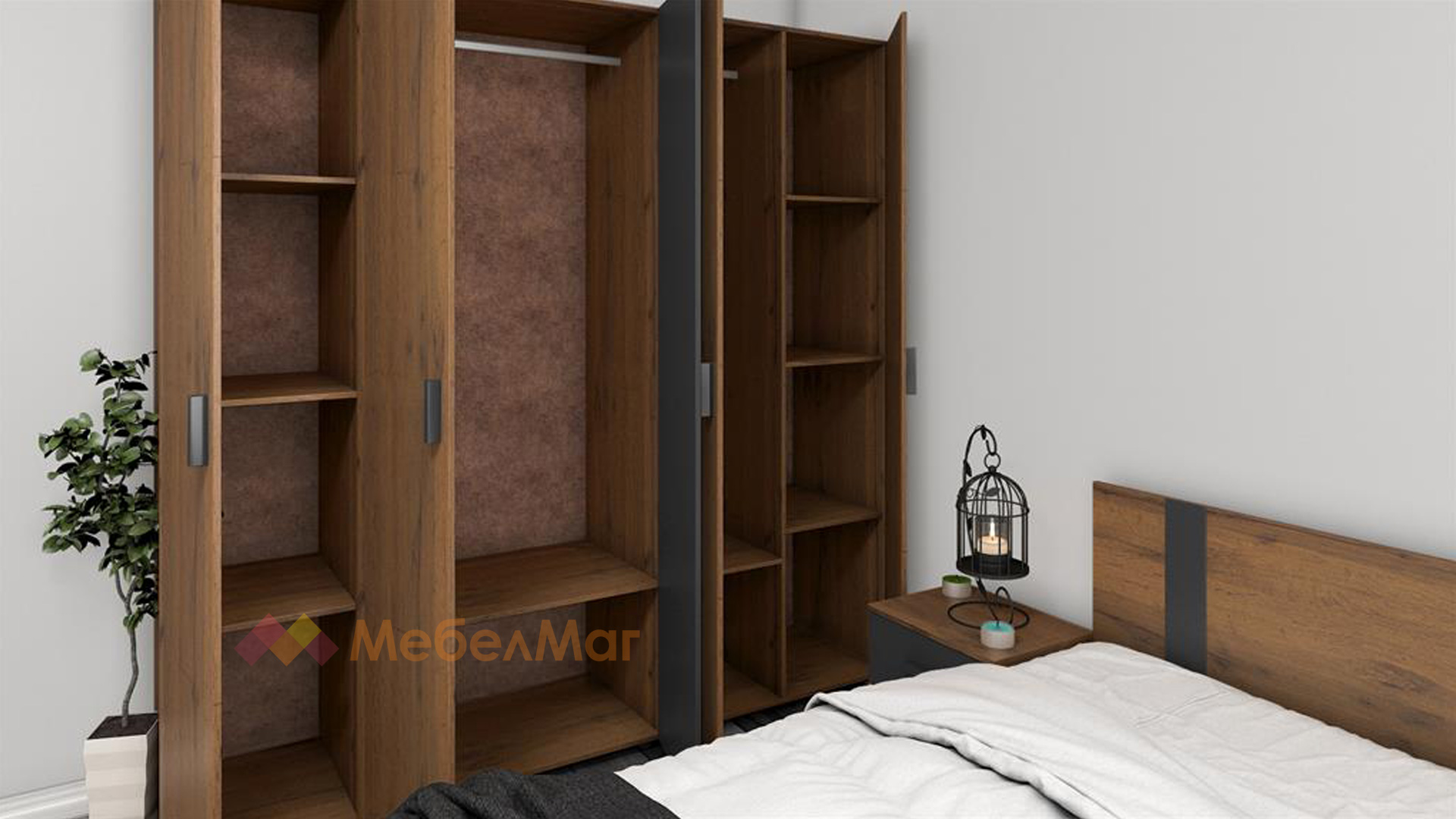 Благодарение на двата гардероба в спалния комплект, можеш да ги разположиш както желаеш - заедно, поотделно, със скрина между тях или както на теб ти харесва.