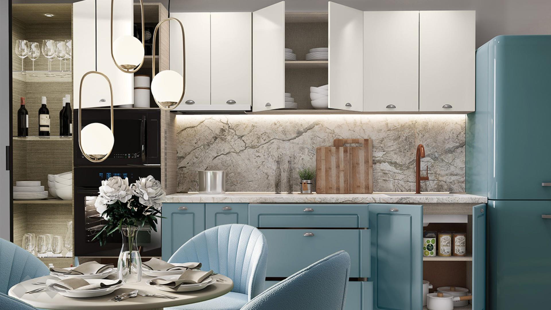 Страхотната модерна комбинация между корпус мока и лице деним мат с крийм гланц, придава на кухнята характер и уют.