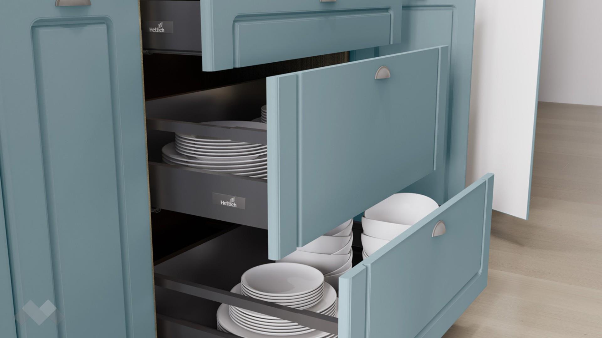 Кухнята е изработена от 16 мм ПДЧ корпус и 18 мм фолиран МДФ. Предимството на фолирания МДФ е, че материалът покрива цялата повърхност, включително и кантовете на детайла, т.е. материалът е облечен изцяло. Термоплотът идва при теб цял, за да можеш да го пригодиш спрямо твоите предпочитания и е в цвят Небула. Всички врати и чекмеджета са с механизъм за плавно затваряне.