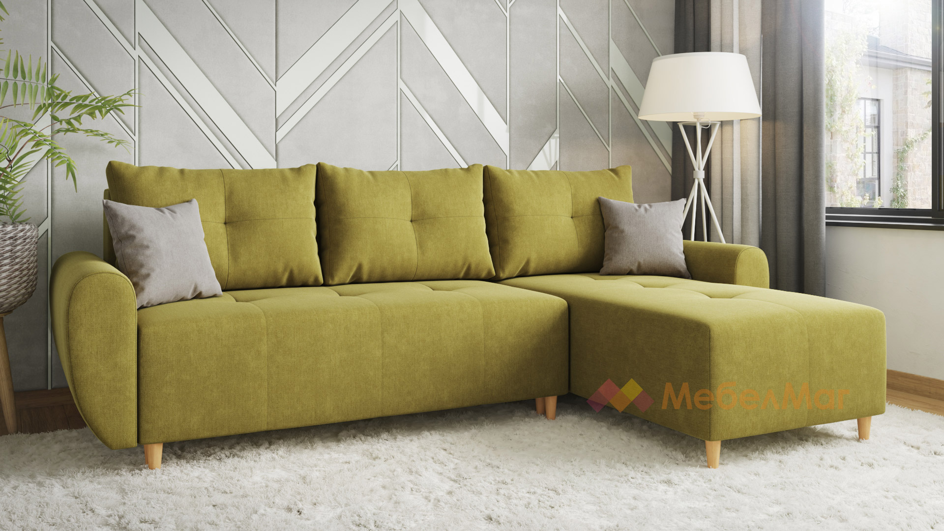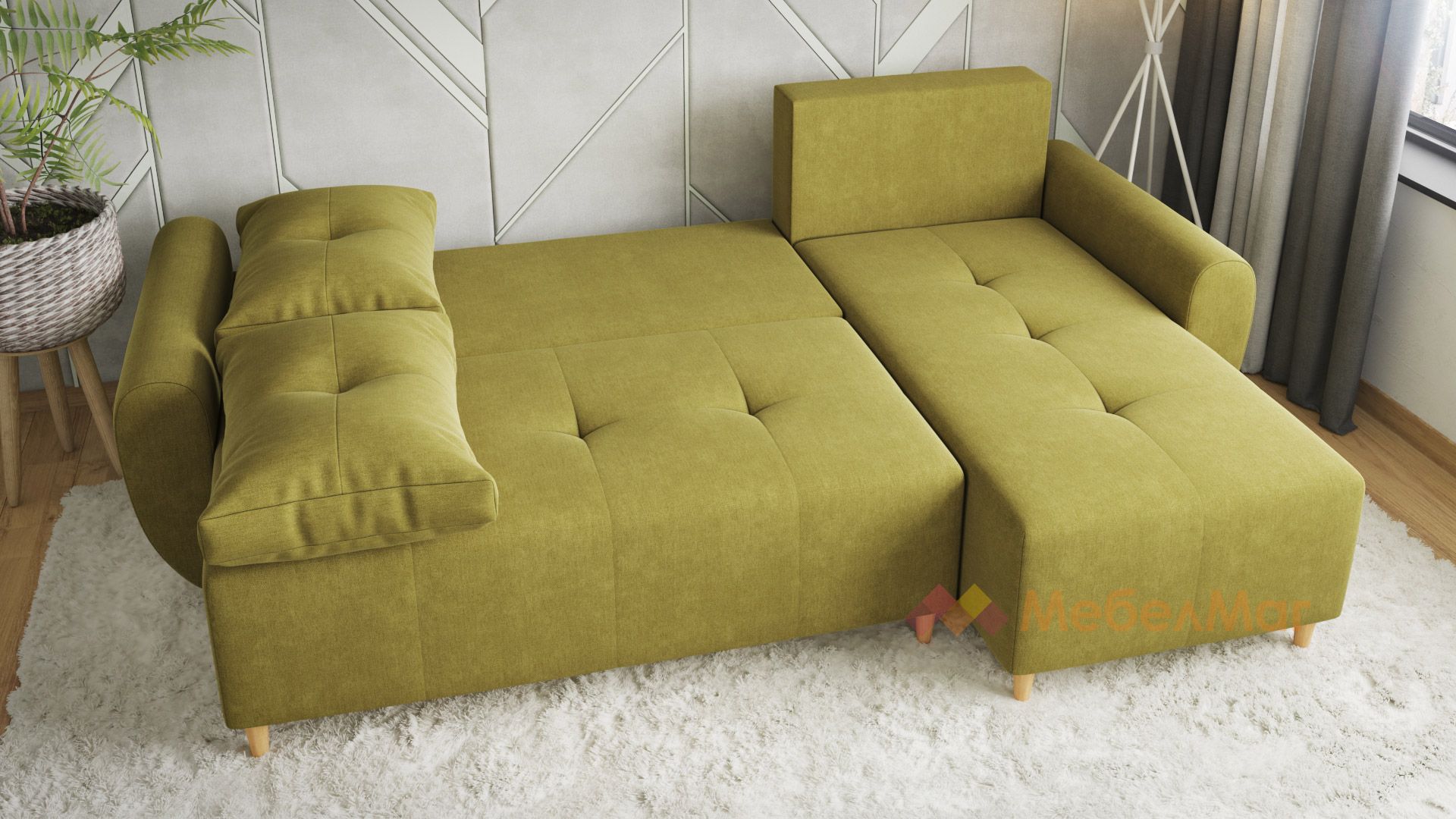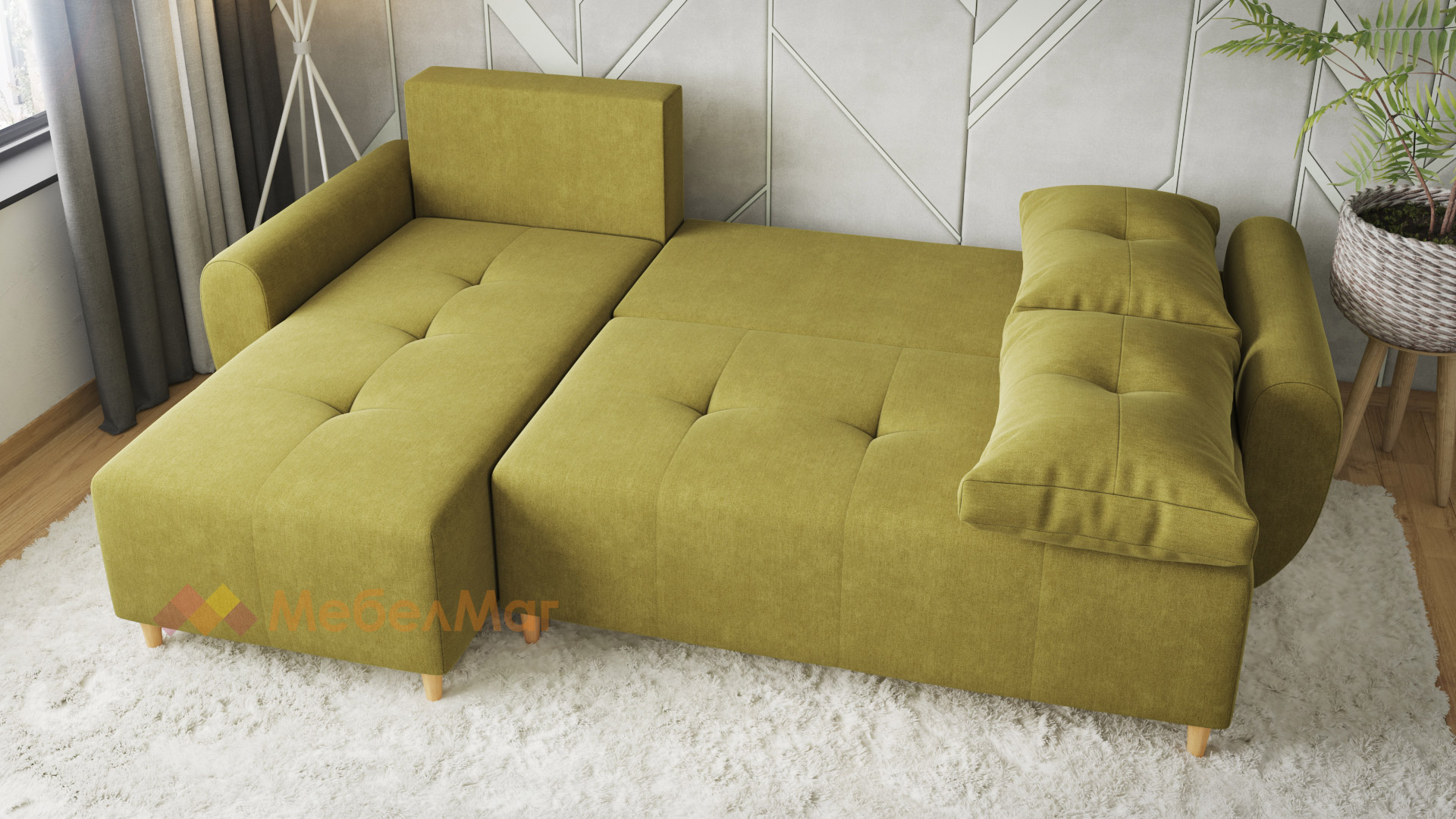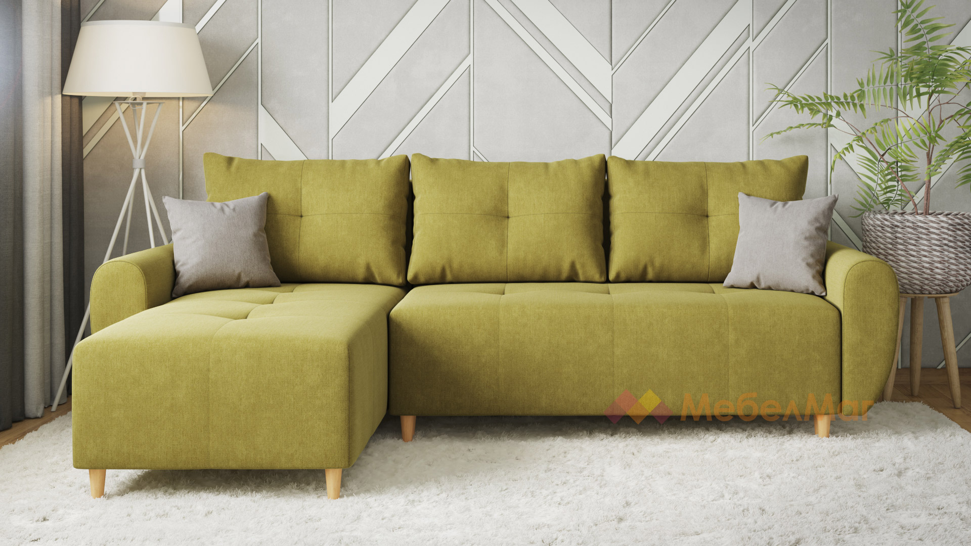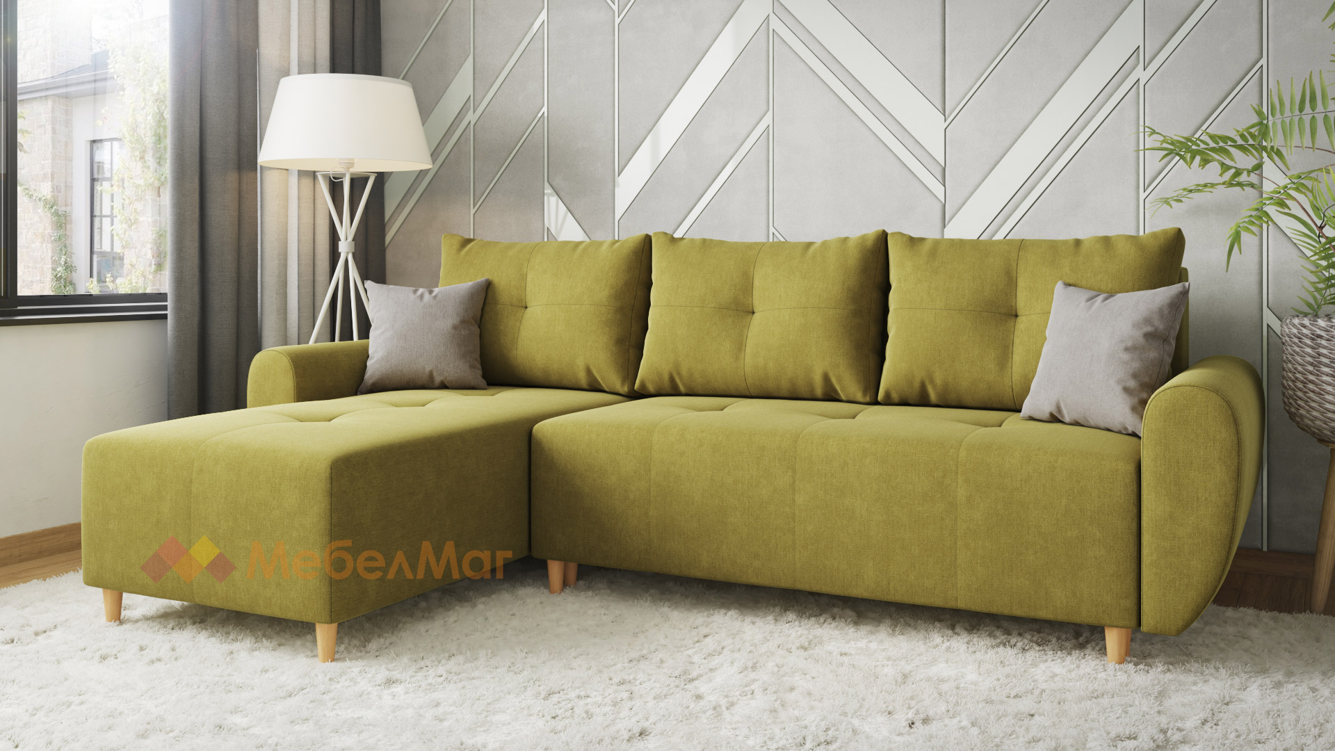 Ъглов диванПамплона Покетзелен универсален ъгъл