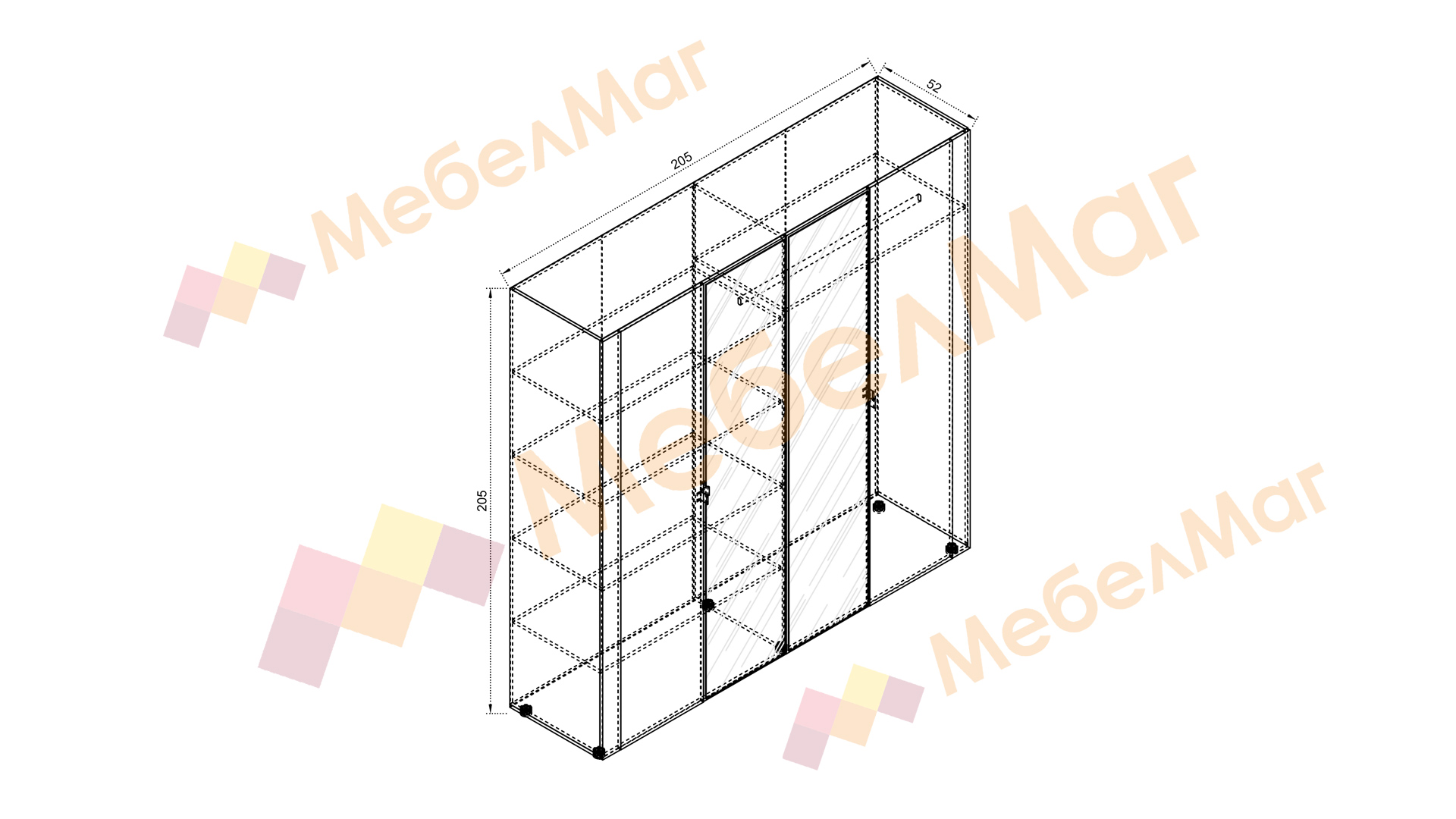 ✓ четирикрилен ✓ 5 рафта ✓ 2 огледала ✓ лост за закачалки ✓ модерен декор ✓ практично разпределение ✓ качествена изработка