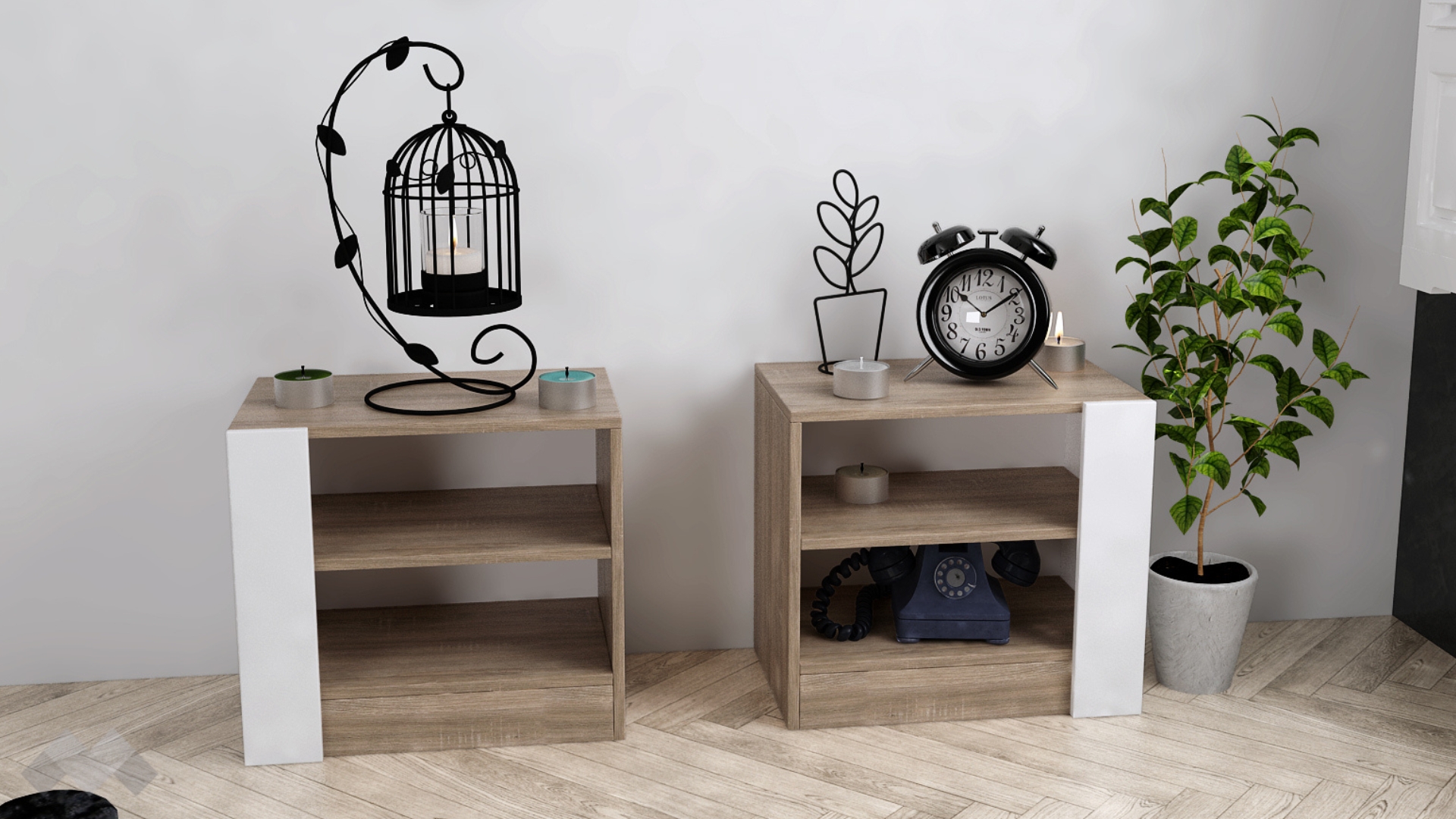 Нощните шкафчета Париж са малки, но практични. Отворените рафтове ти предоставят достатъчно място за съхранение на всички най-необходими вещи, за да са винаги на една ръка разстояние. Върху горните плотове можеш да поставиш нощни лампи или стилна декорация.