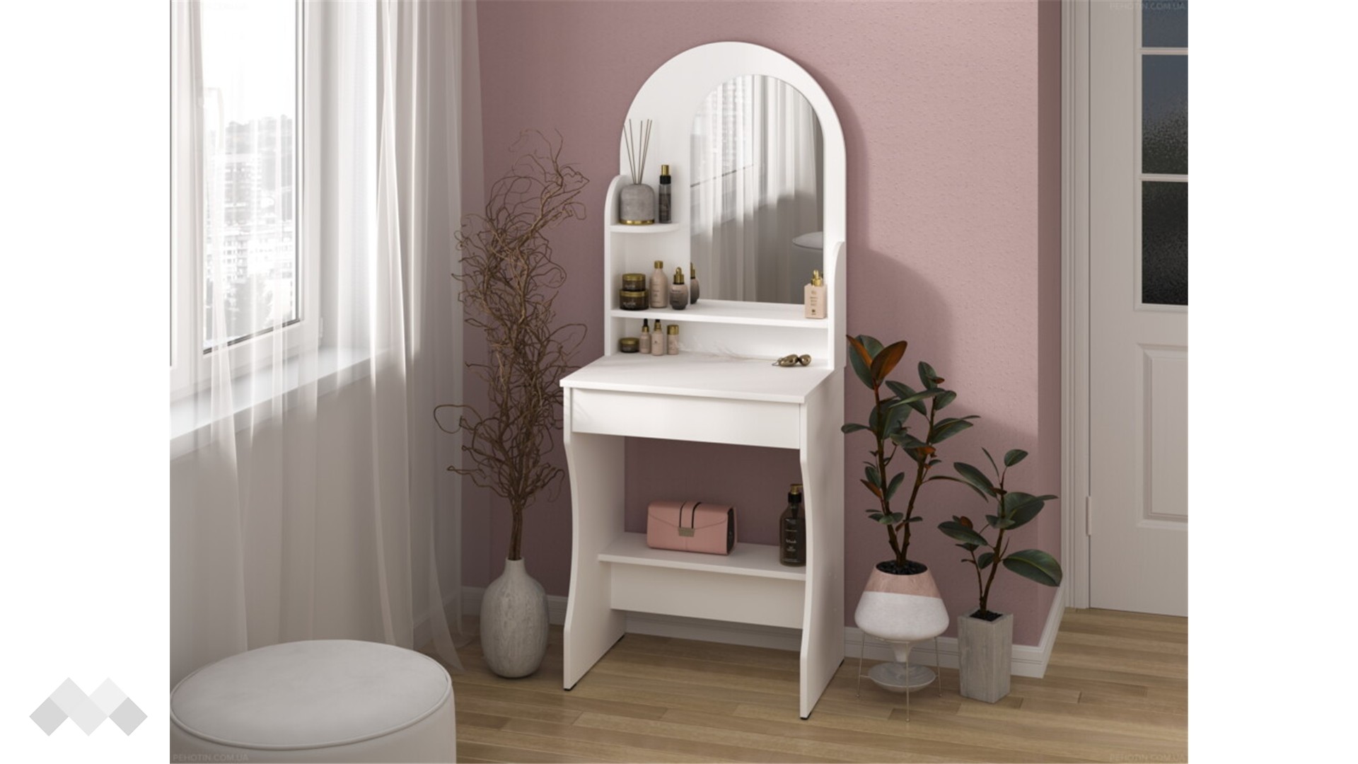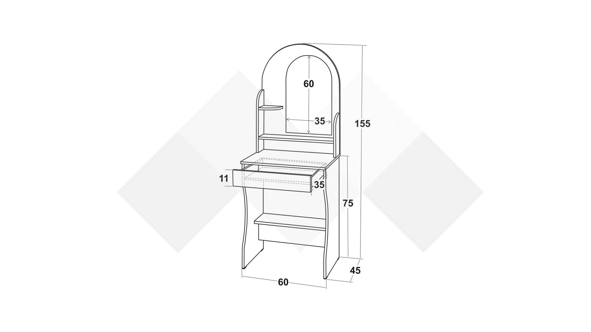 Тя е практично допълнение към спалнята на всяка дама. Към нея е включено и огледало с оптимални размери Д: 35 см. В: 60 см.