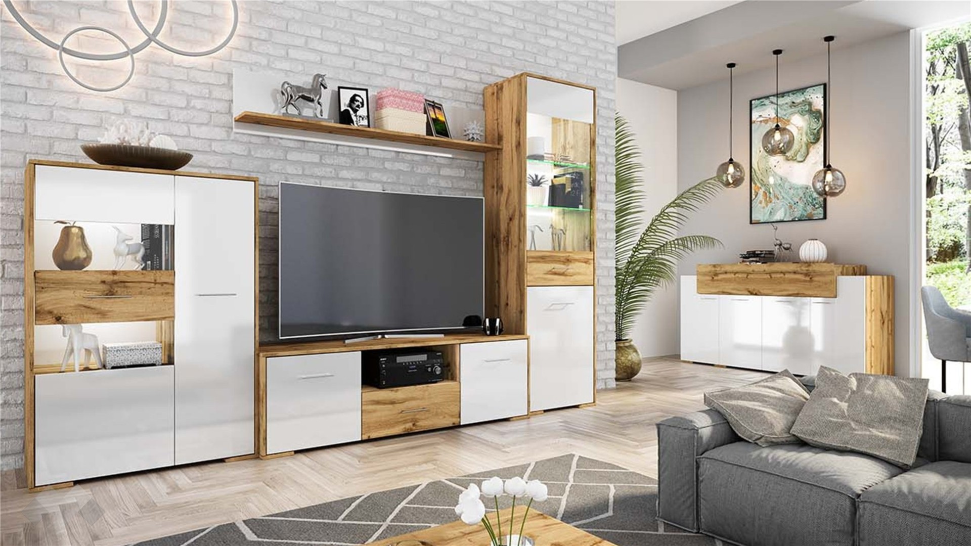 ⭐ Предимства: ✓ 2 ниши ✓ 4 затворени шкафа ✓ компактен и практичен ✓ модерен декор ✓ качествена изработка ✓ 16 мм ПДЧ