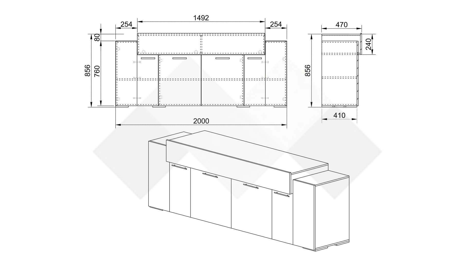 ✓ 2 чекмеджета ✓ 4 затворени шкафа ✓ компактен и практичен ✓ модерен декор ✓ качествена изработка ✓ 16 мм ПДЧ