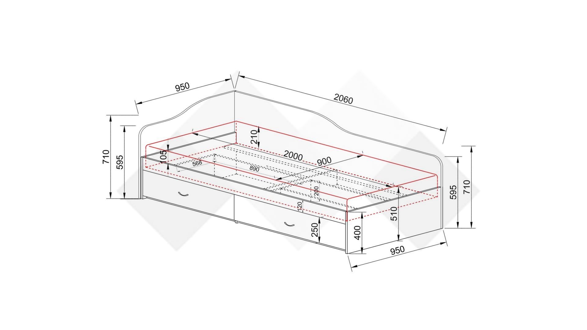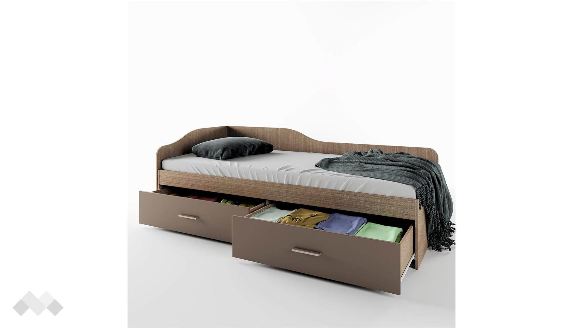 Леглото ще ти осигури необходимото пространство за спокоен и комфортен сън. То е подходящо за матрак с размер 90/200 см. Добавените табли осигуряват пълна изолация от заобикалящите го стени, така че когато си легнеш ще усещаш единствено комфорта на матрака и мекотата на завивките. В долната част на леглото ще видиш две удобни чекмеджета, където можеш да съхраняваш дрехи, завивки, бельо или други необходими за теб вещи.