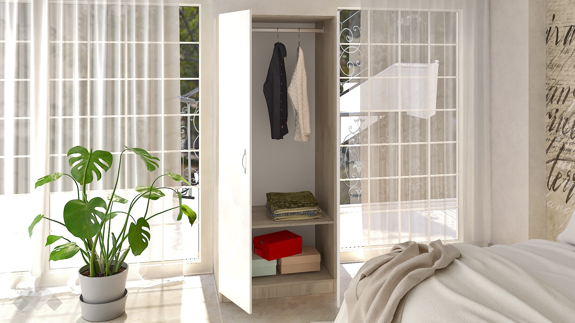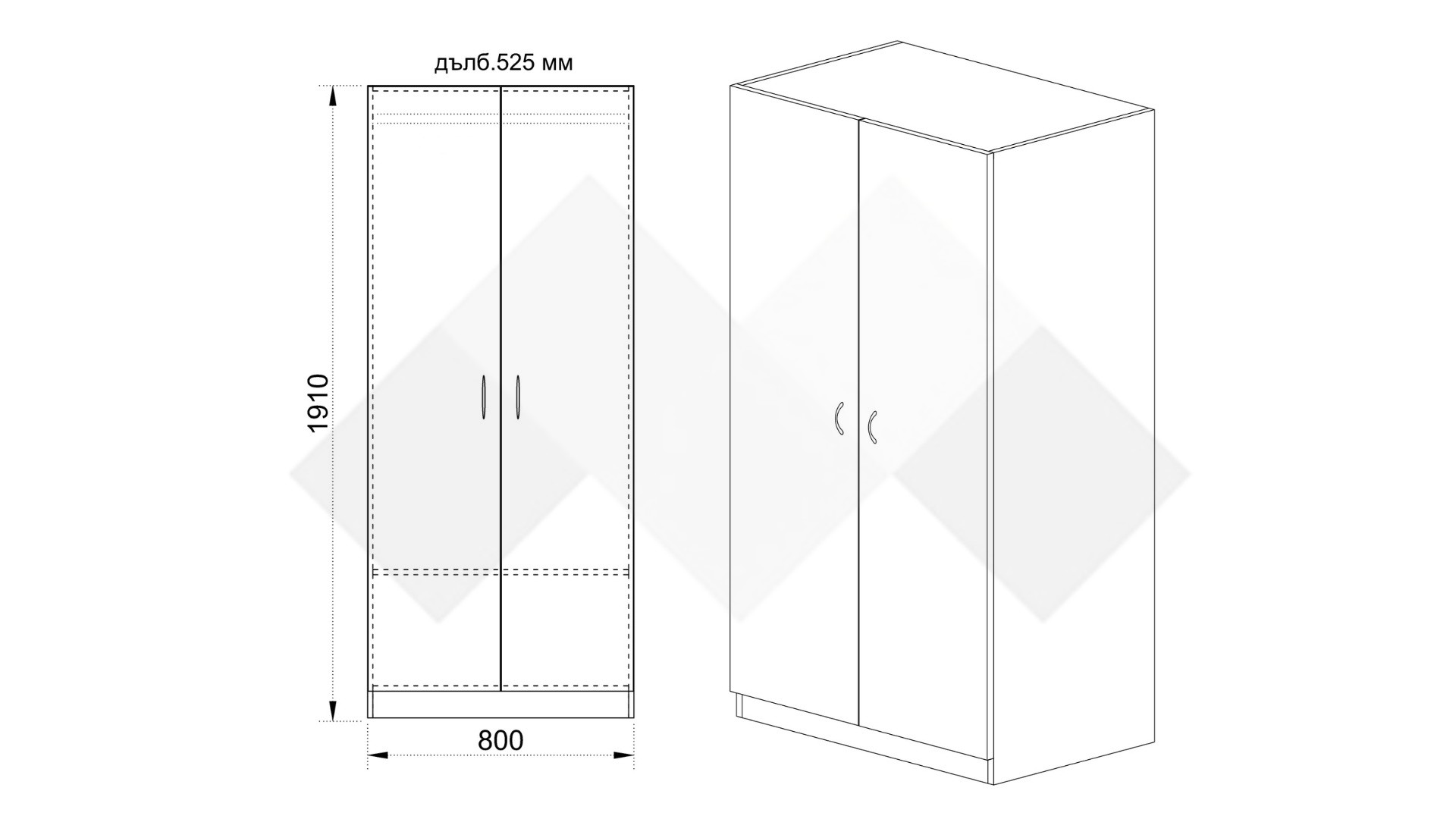 ✓ двукрилен ✓ рафт ✓ лост за закачалки ✓ механизъм за плавно затваряне ✓ модерен декор ✓ практично разпределение ✓ качествена изработка