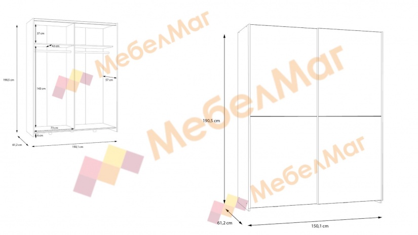 ✓ плъзгащи врати ✓ 2 рафта ✓ 2 лоста за закачалки ✓ дизайн ✓ модерен дизайн ✓ качествена изработка