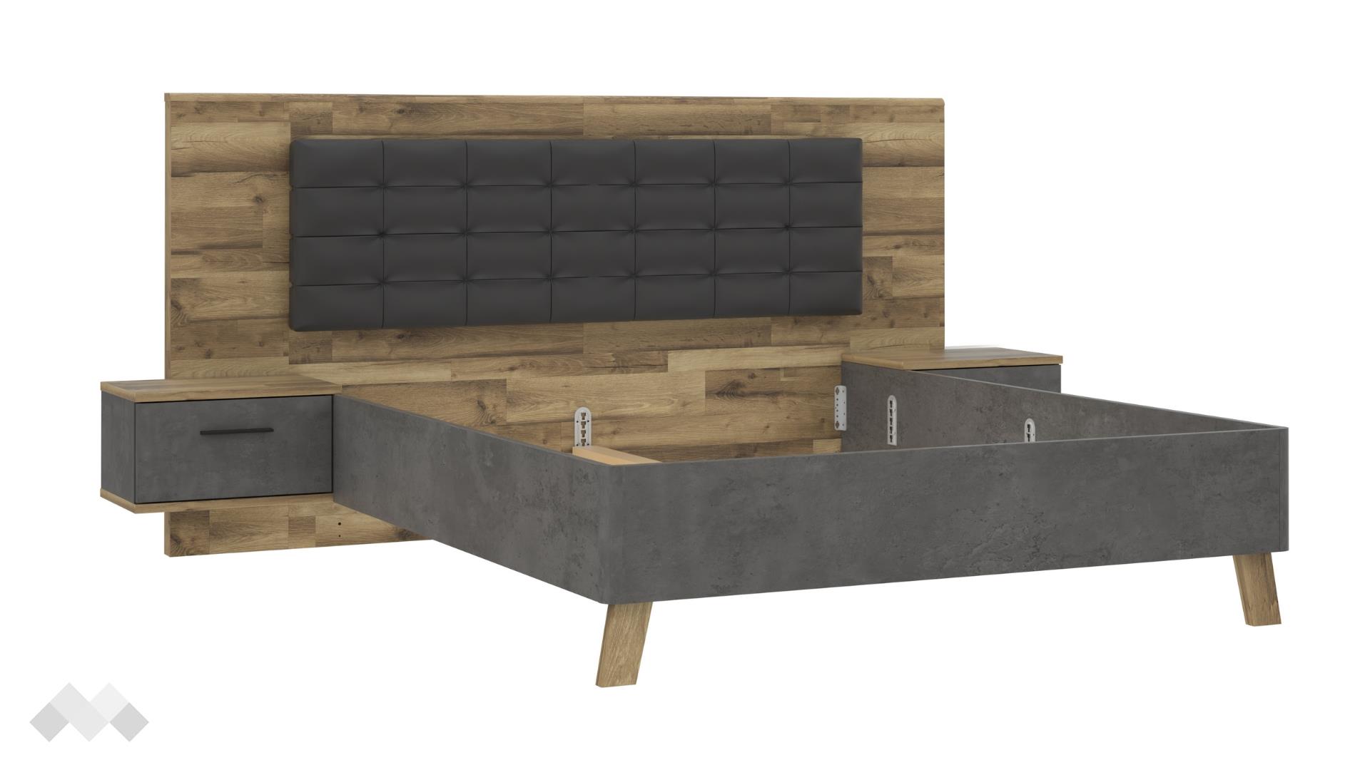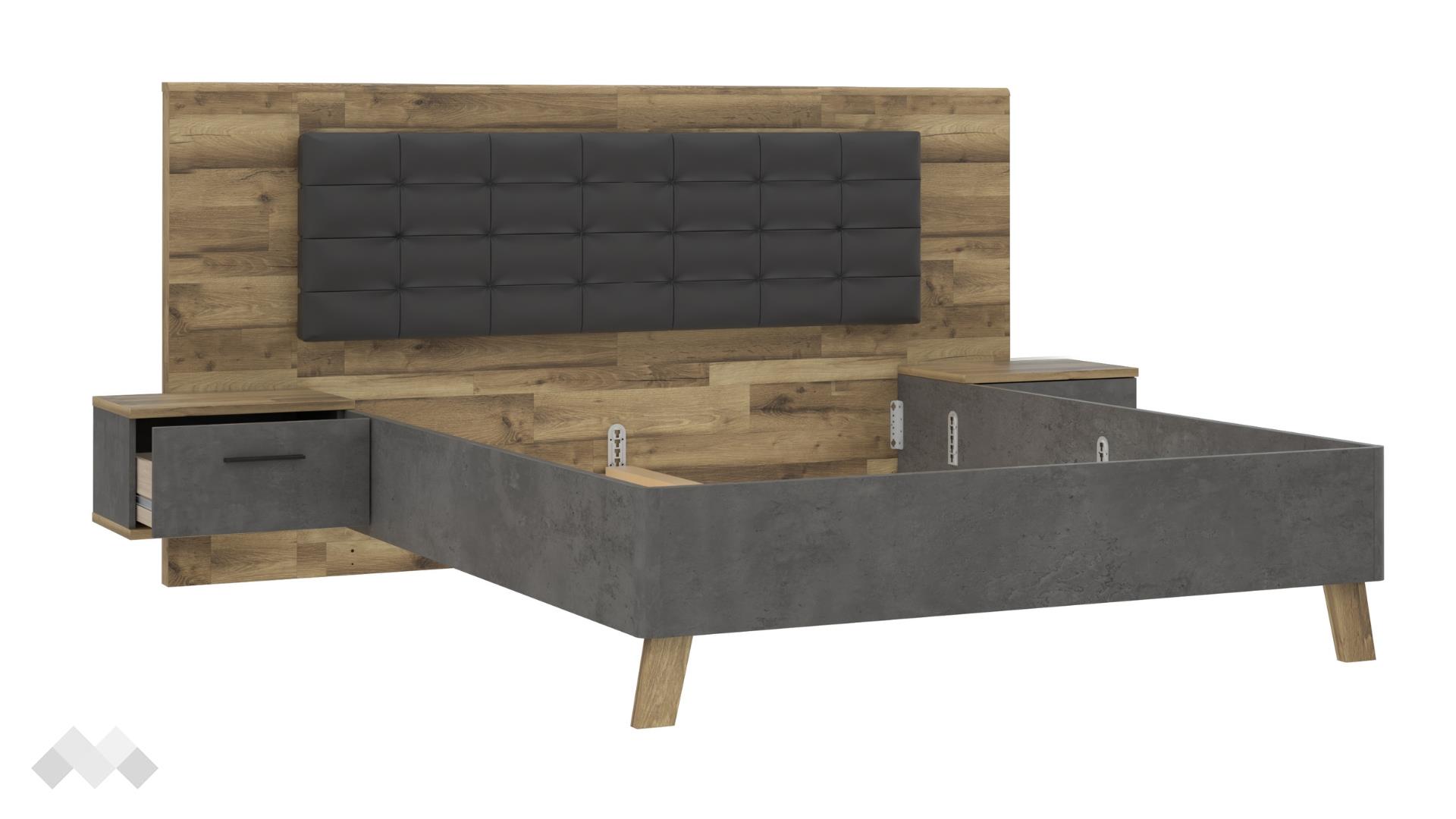 Спалня с нощни шкафчета 160/200Ричианобетон с дъб став