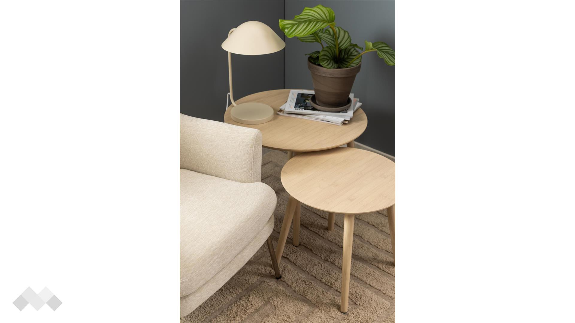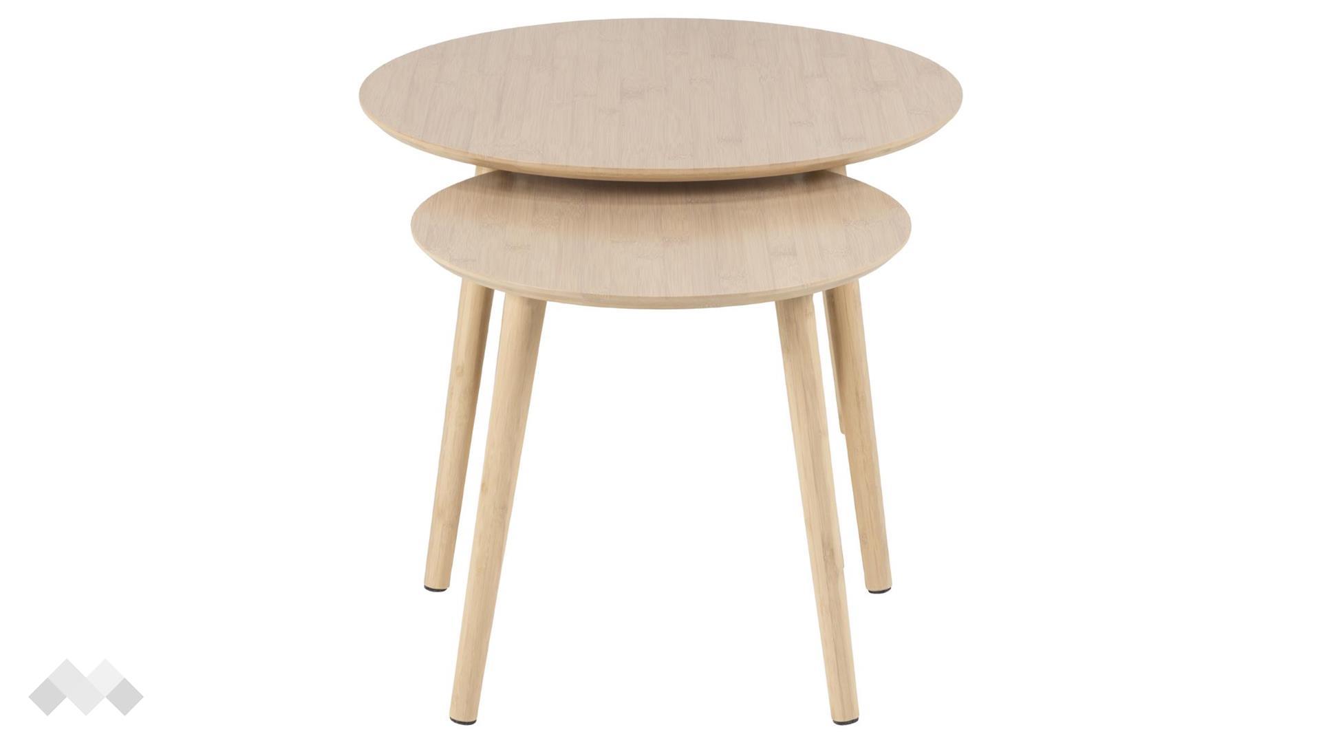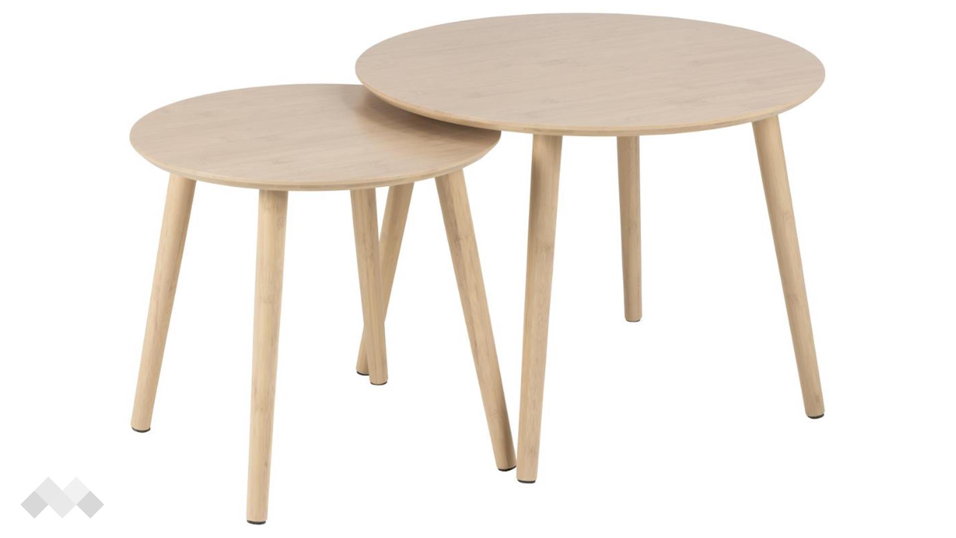 Комплект холни маси Рослин е съчетание на природа и минимализъм, вдъхновен от скандинавския стил. Кръглите плотове и конструкцията от бамбук придават на тези маси лекота и естествена красота, която създава топла и уютна атмосфера в дома. Изчистените линии и лекото излъчване на масите ги правят идеални за всяко съвременно пространство.