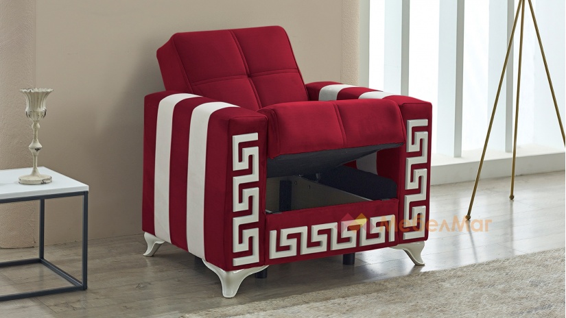 Фотьойл Сабина е и функционален - благодарение на клик-клак механизма ще разполагаш с повече пространство за релакс, а под седалката се крие практична ракла, където да съхраняваш вещите, за които все не се намира място.
