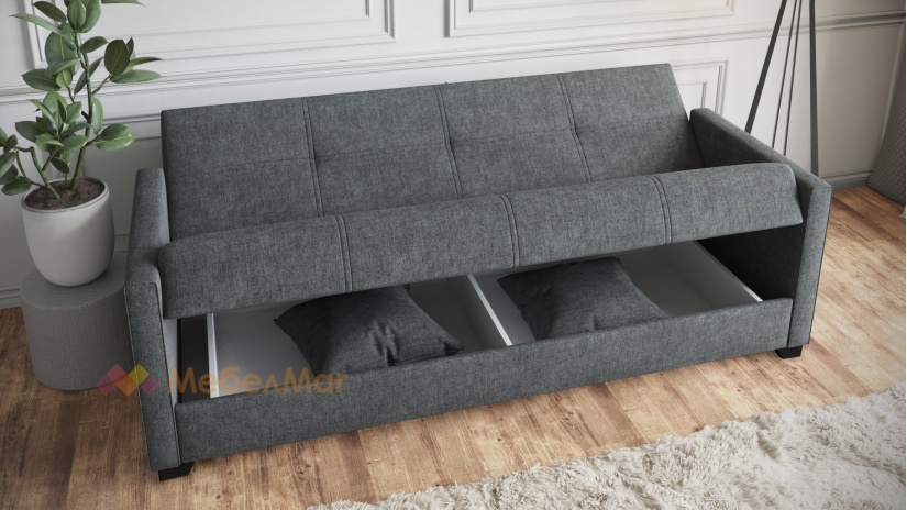 За твоето удобство Сандра е проектиран с клик-клак механизъм, който бързо го превръща в удобно легло за сън. Под седалката се намира просторна ракла, в която можеш да подредиш завивки, възглавници и други вещи, така че всичко да е на едно място.