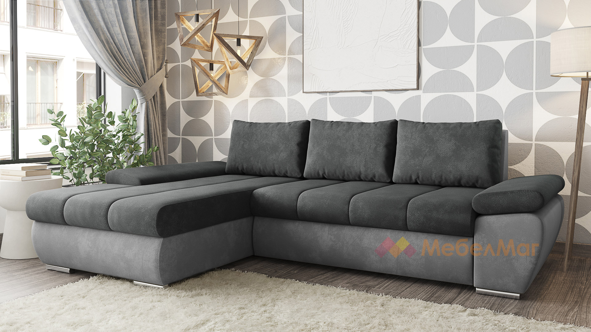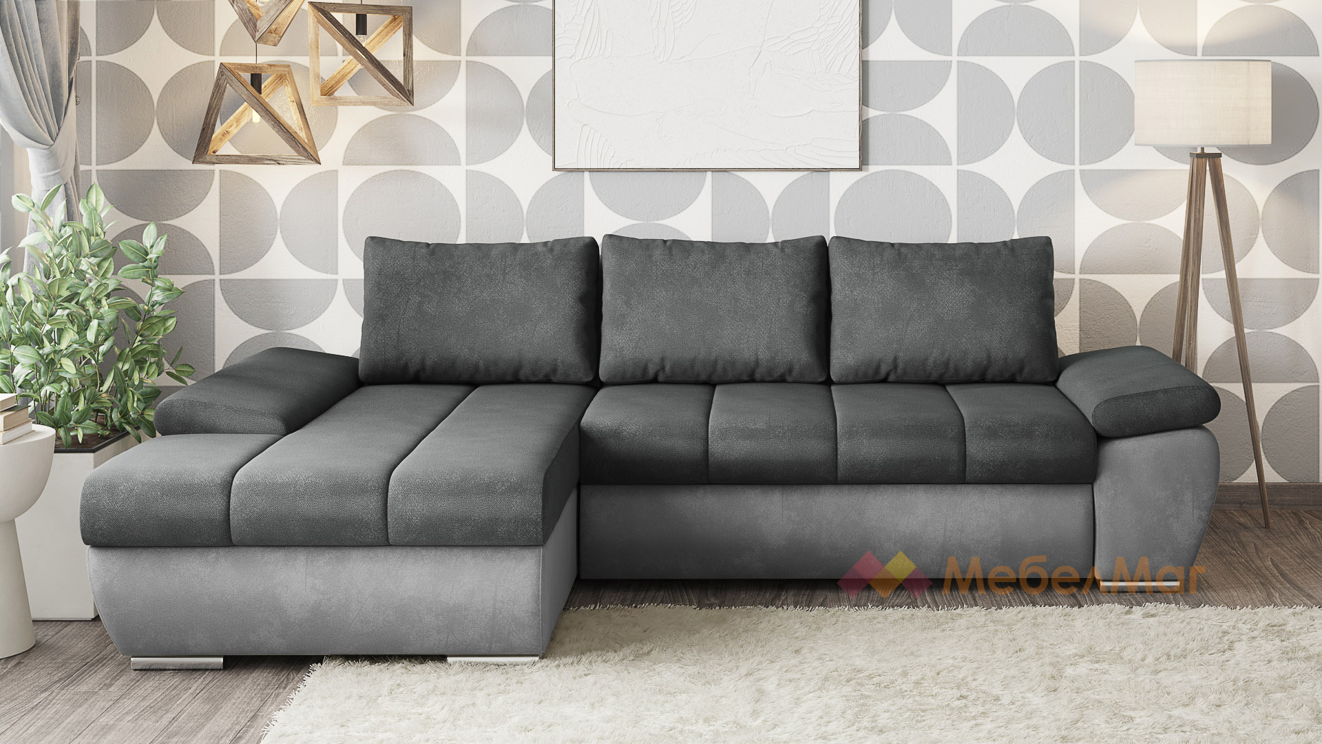 Ъглов диванСавонаграфит със сиво с посока: ляв