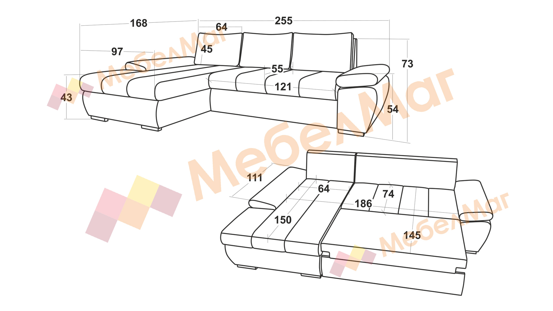 Функцията сън, която прави този диван идеален за почивка, може да бъде лесно активирана чрез подматрачния механизъм, превръщайки дивана в удобно легло с размери 145/186 см.