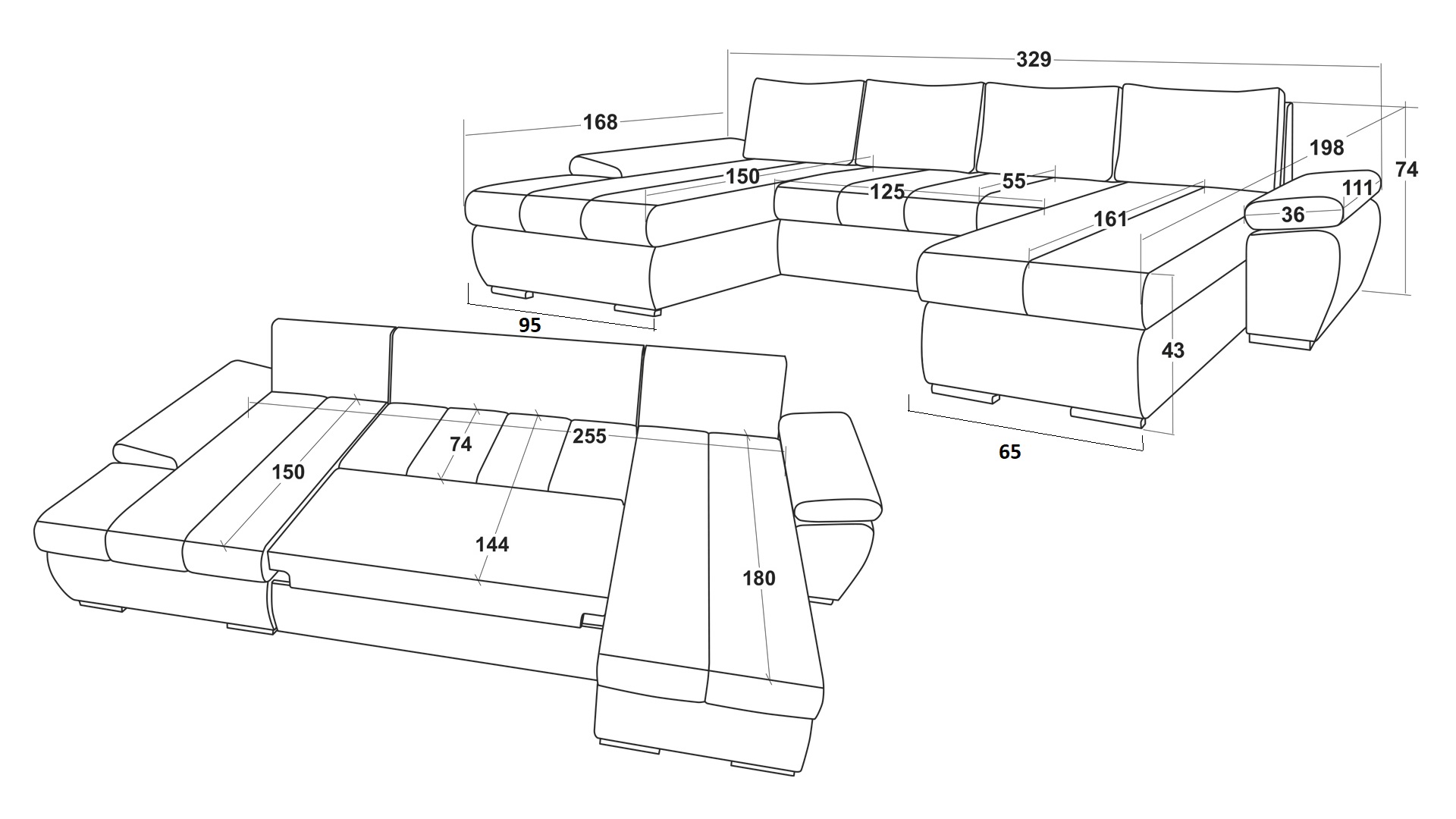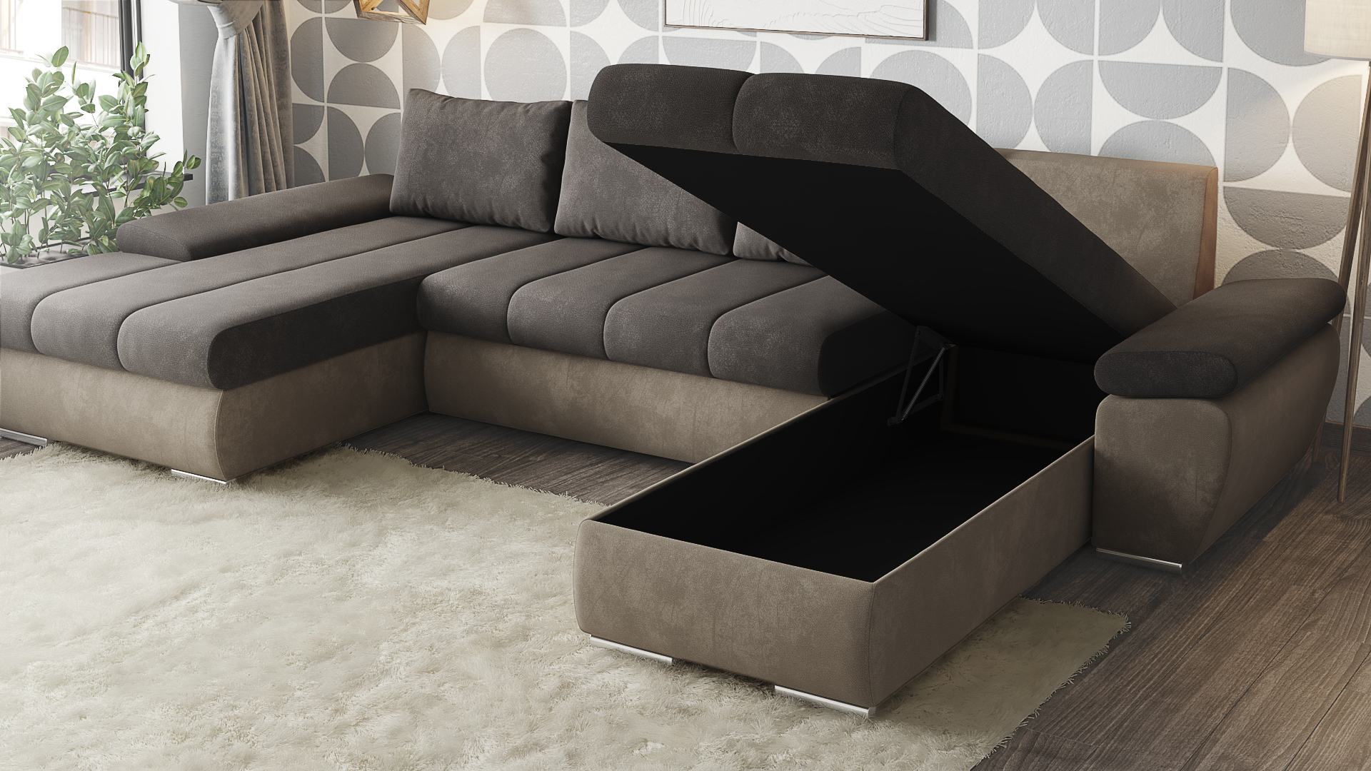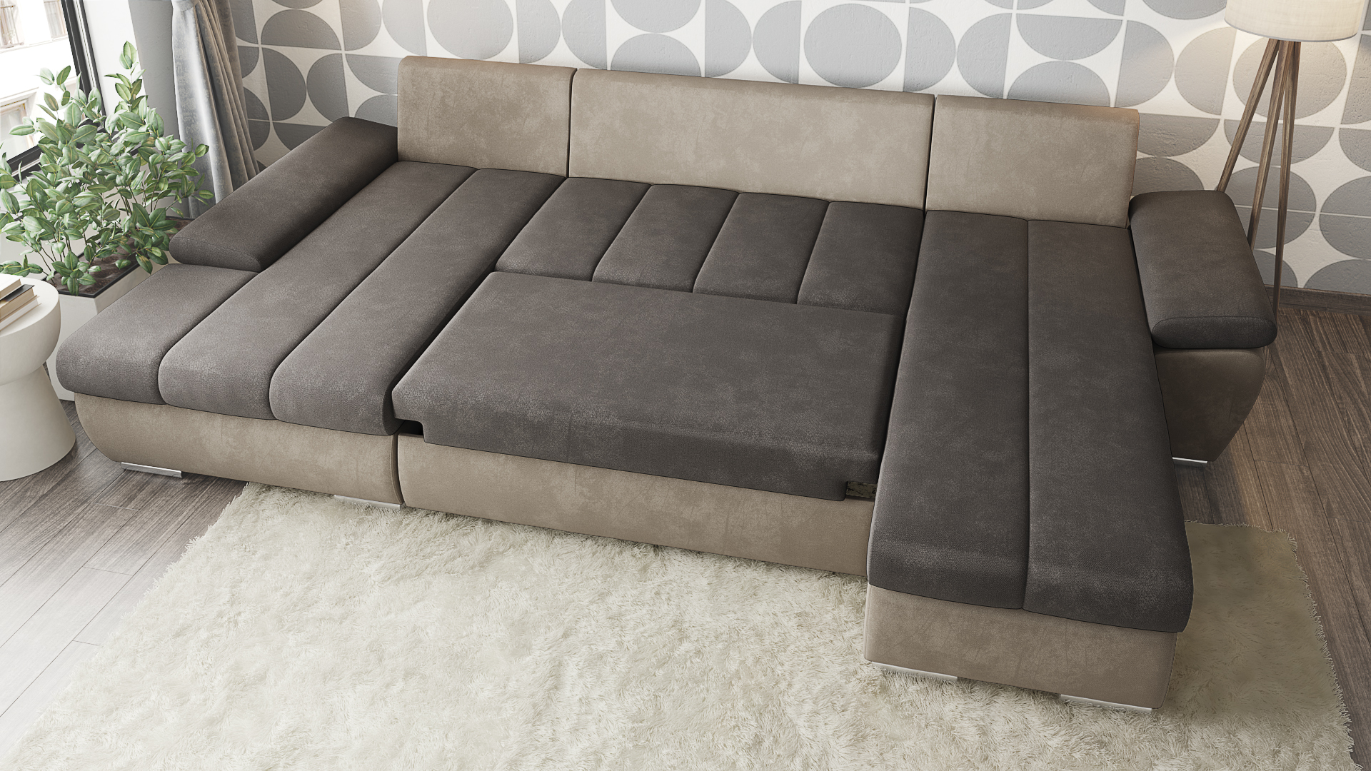 Функцията сън, активираща се чрез подматрачен механизъм, осигурява практично място за отдих с площ приблизително 144/255 см – перфектна за гости или ежедневна употреба. Диванът разполага с подлакътници от двете страни, с лека извивка за оптимална опора, както и с големи облегални възглавници, чийто калъфи се свалят, за по-лесна поддръжка, гарантиращи мекота и релакс.