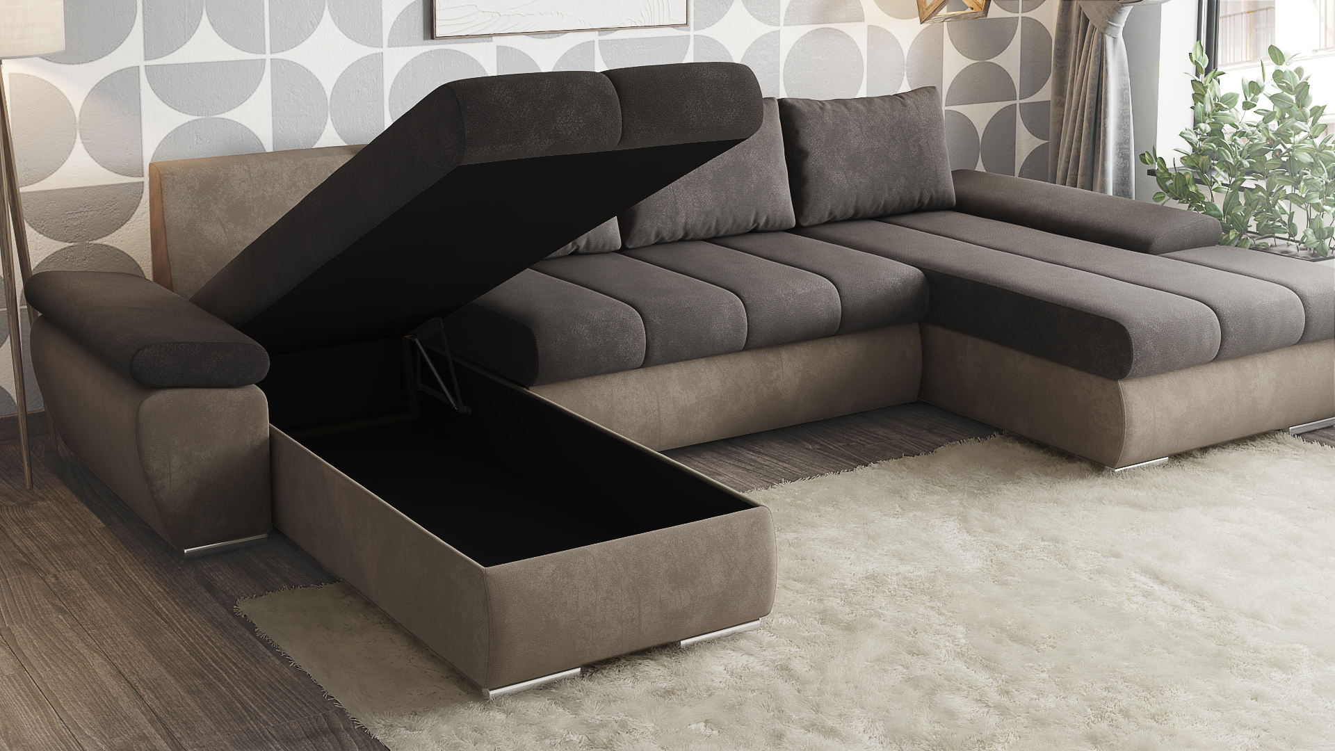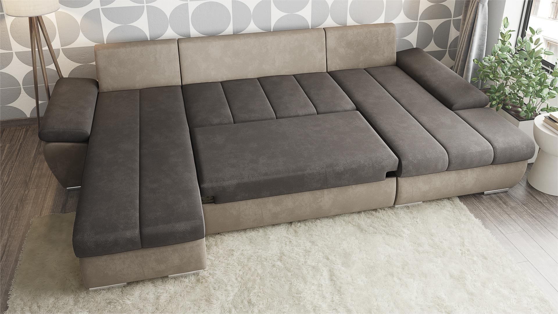 Функцията сън, активираща се чрез подматрачен механизъм, осигурява практично място за отдих с площ приблизително 144/255 см – перфектна за гости или ежедневна употреба. Диванът разполага с подлакътници от двете страни, с лека извивка за оптимална опора, както и с големи облегални възглавници, чийто калъфи се свалят, за по-лесна поддръжка, гарантиращи мекота и релакс.
