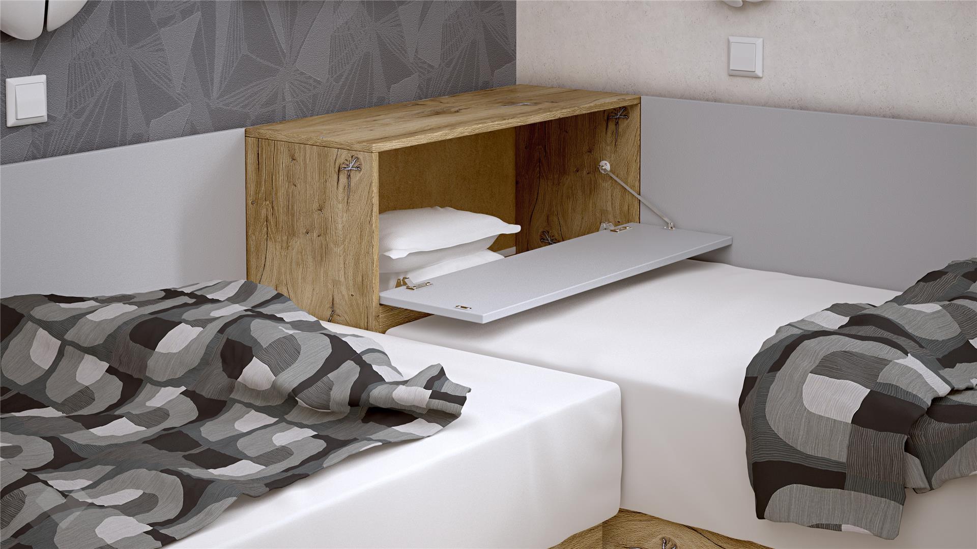 Леглата са с включен механизъм за повдигане на матрака и са подходящи само за еднолицев матрак.