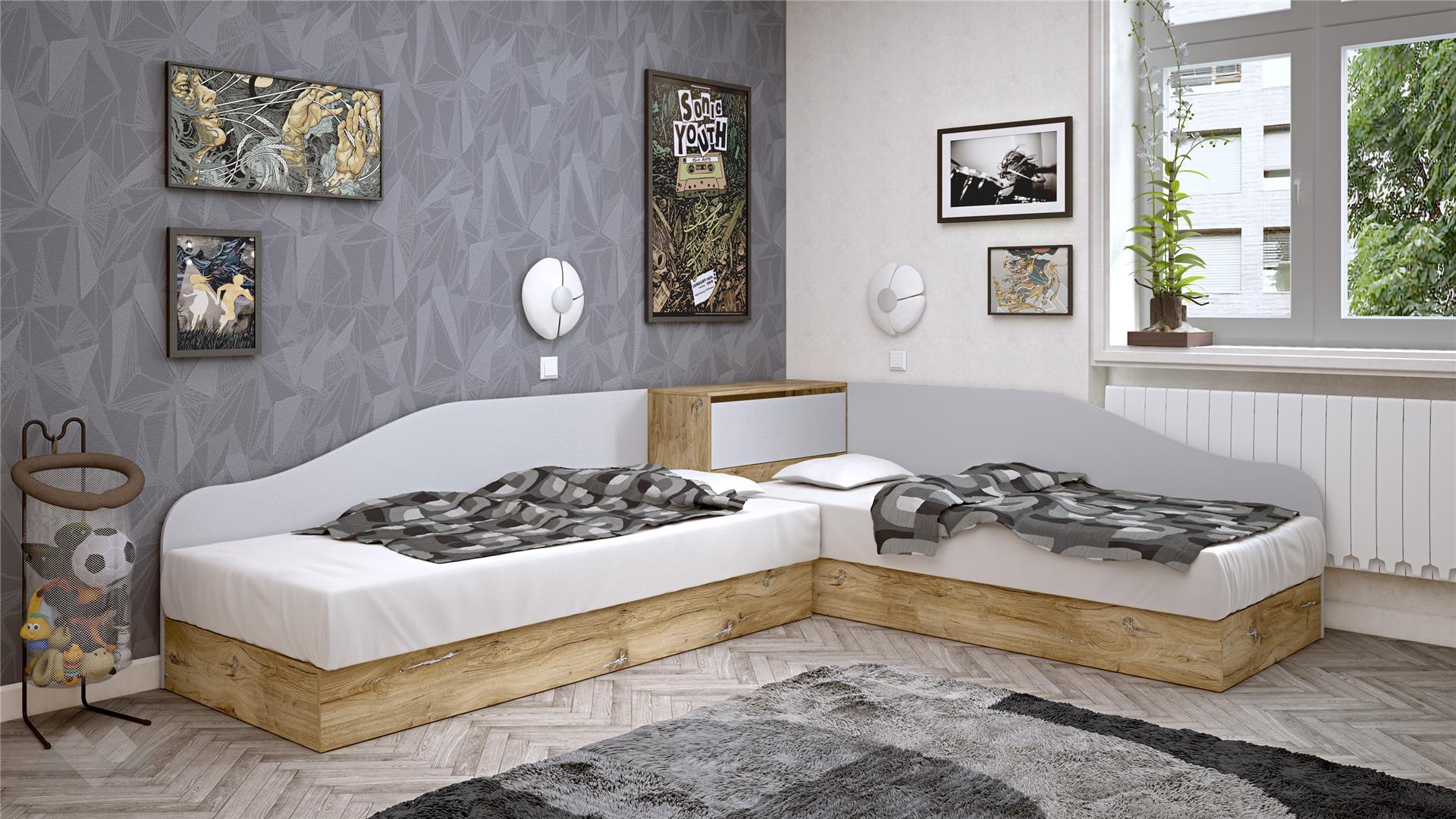 Ъглови легла 82/190Селтиккелтски дъб със светло сиво