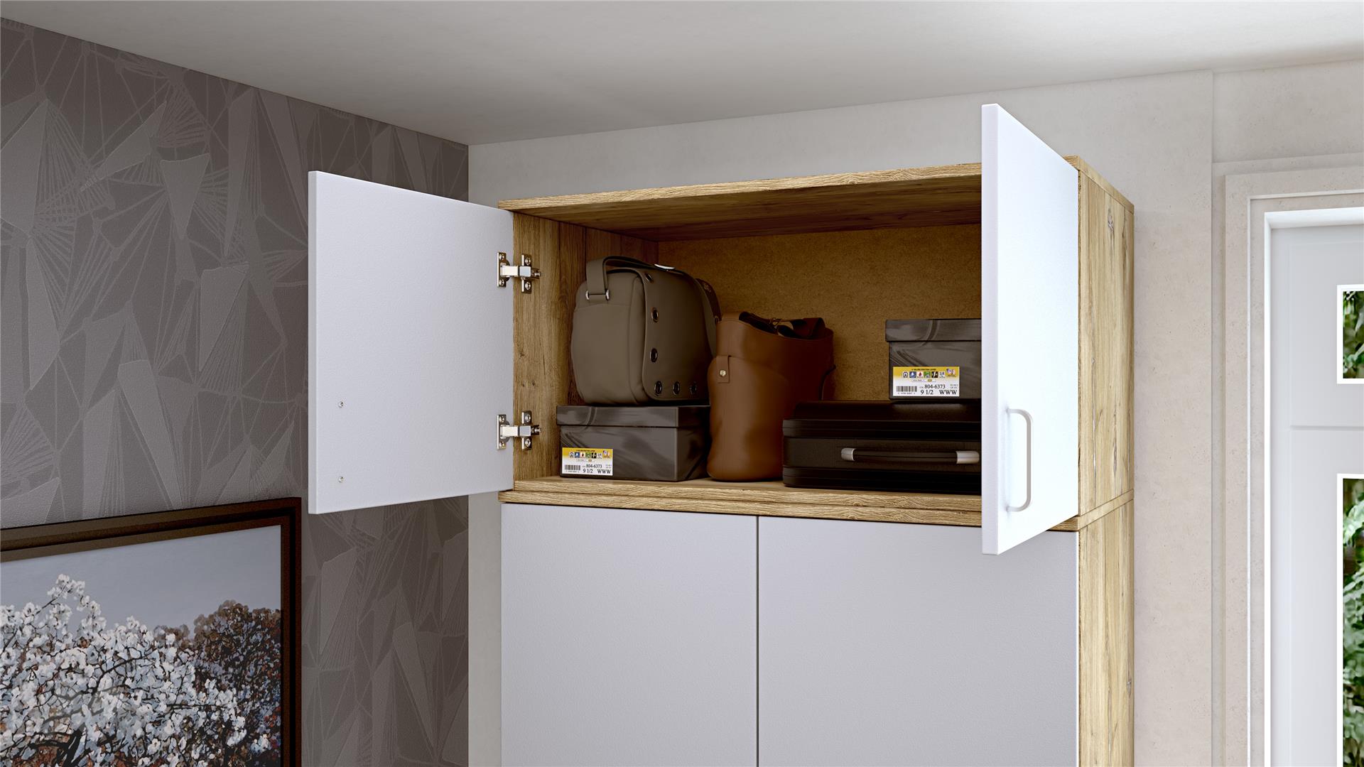 Надстройка за двукрилен гардероб Селтик внася свеж и модерен полъх във вашия дом, съчетавайки топлината на природата с елегантна сдържаност. Ключът към уникаленият чар е перфектната комбинация от светъл келтски дъб с неговата изразителна, естествена текстура и гладко светло сиво, което придава усещане за простор, чистота и модерен дизайн.