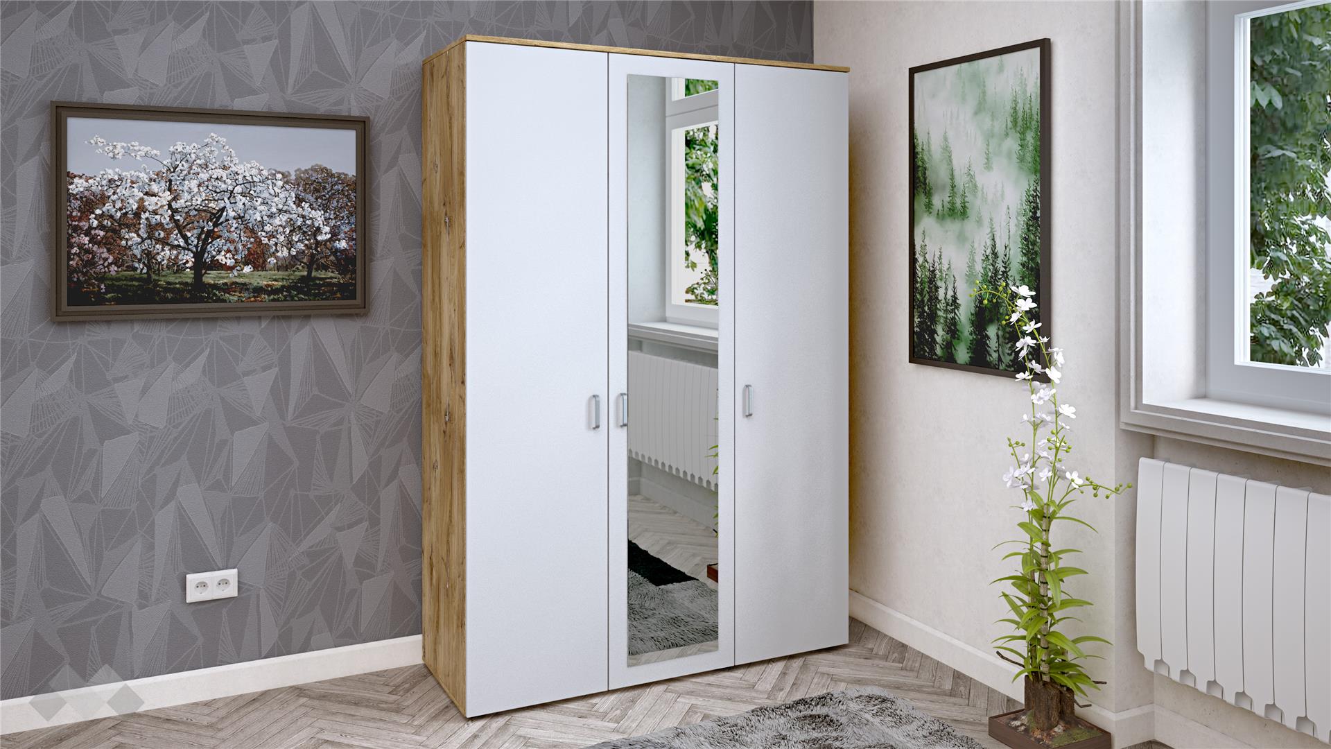 ⭐ Предимства: ✓ 16 мм ПДЧ ✓ трикрилен ✓ 4 рафта ✓ огледало ✓ лост за закачалки ✓модерен дизайн ✓ практично разпределение ✓ качествена изработка