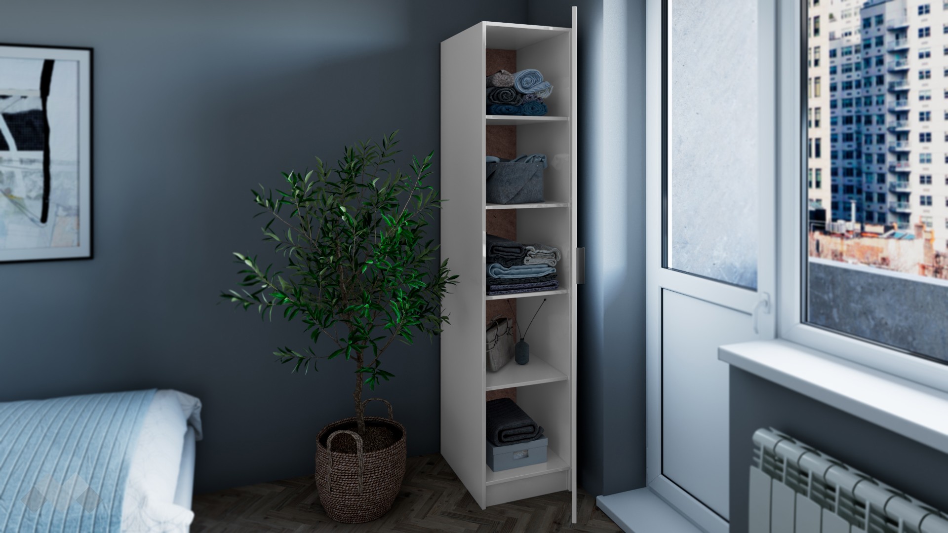 Щом отвориш вратата, ще откриеш удобно разположени рафтове, подходящи както за дрехи, така и за всякакви други вещи и аксесоари. Благодарение на компактните си размери и изчистен дизайн, гардеробът е подходящ не само за жилища, но и за офиси, хотели и стаи за гости.