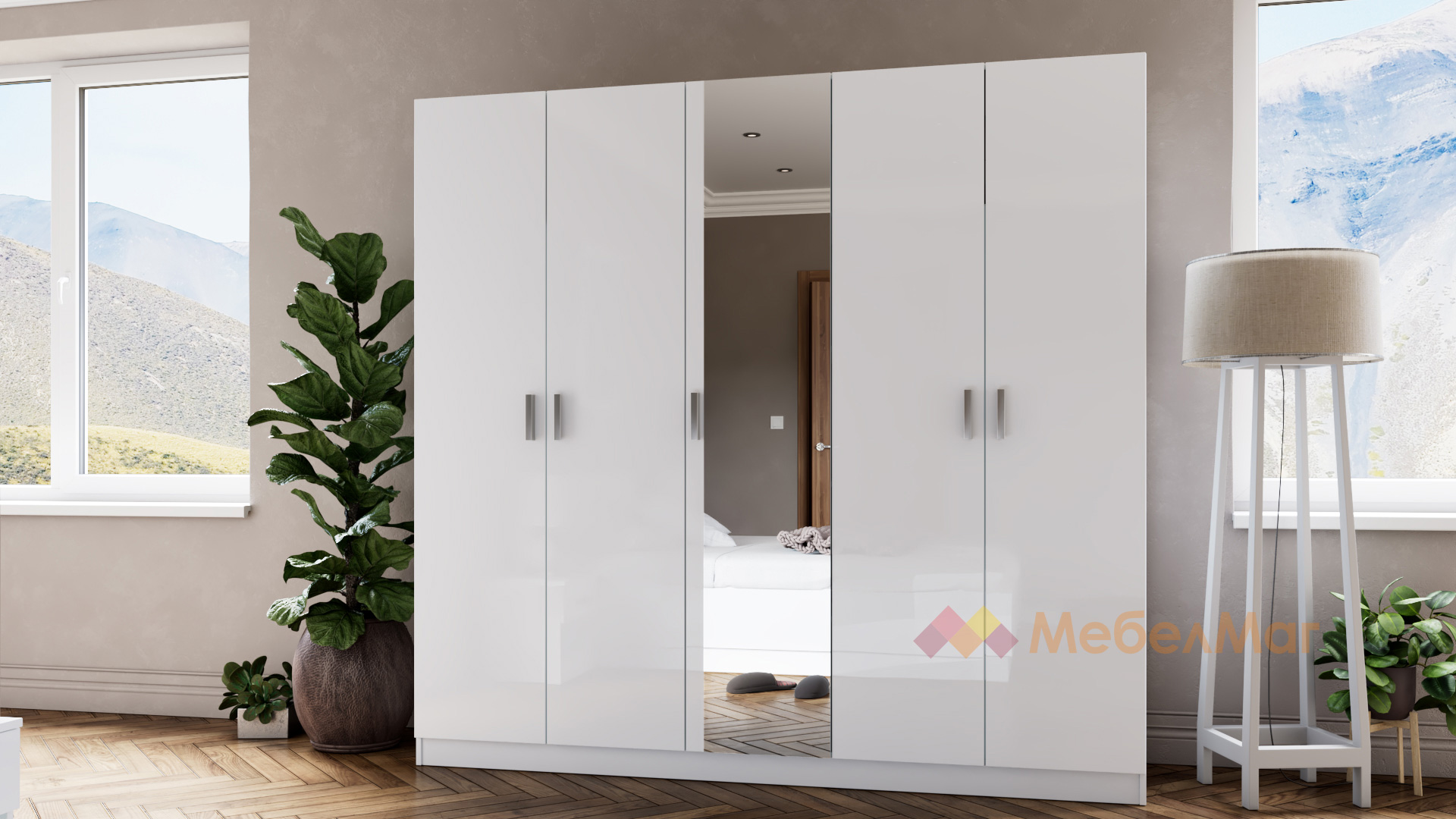 Петкрилен гардероб Шайн е изработен от висококачествено ПДЧ с дебелина 16 мм. Дръжките са удобни за хващане и допринасят за елегантната визия на модела.