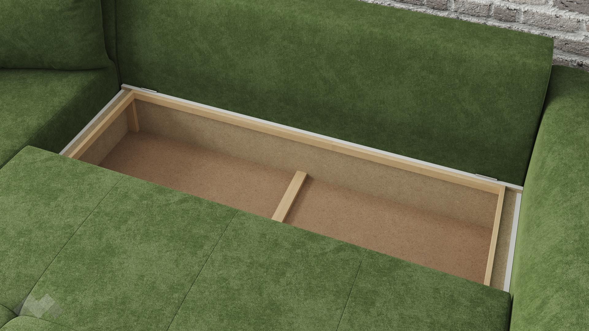 Освен това, ъгловият диван Сиера има ракла, която предлага дискретно място за съхранение на завивки, възглавници и други вещи, които би искал да са ти под ръка, но същевременно прибрани. Благодарение на функцията сън, диванът за секунди се трансформира в просторно легло с площ за сън 154/246 см - удобно решение както за гости, така и за ежедневна употреба.