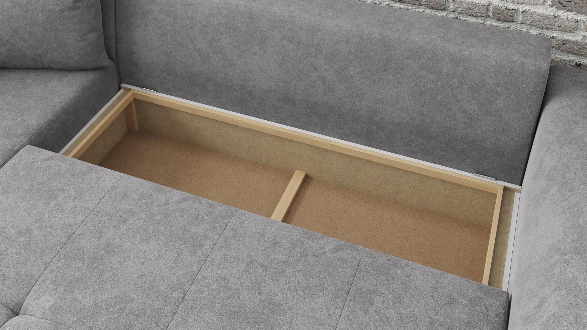 Освен това, ъгловият диван Сиера има ракла, която предлага дискретно място за съхранение на завивки, възглавници и други вещи, които би искал да са ти под ръка, но същевременно прибрани. Благодарение на функцията сън, диванът за секунди се трансформира в просторно легло с площ за сън 154/246 см - удобно решение както за гости, така и за ежедневна употреба.
