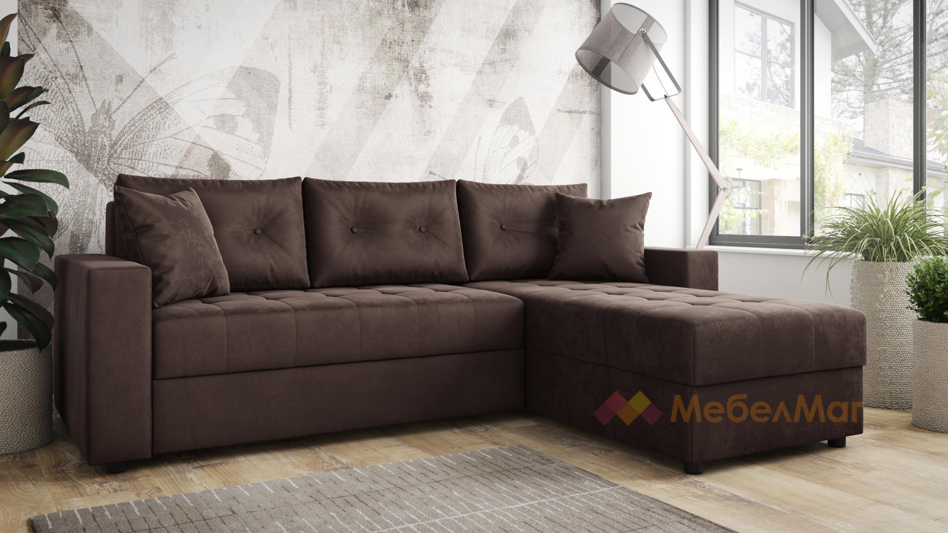 Ъглов диванСингълкафяв с посока: десен ъгъл