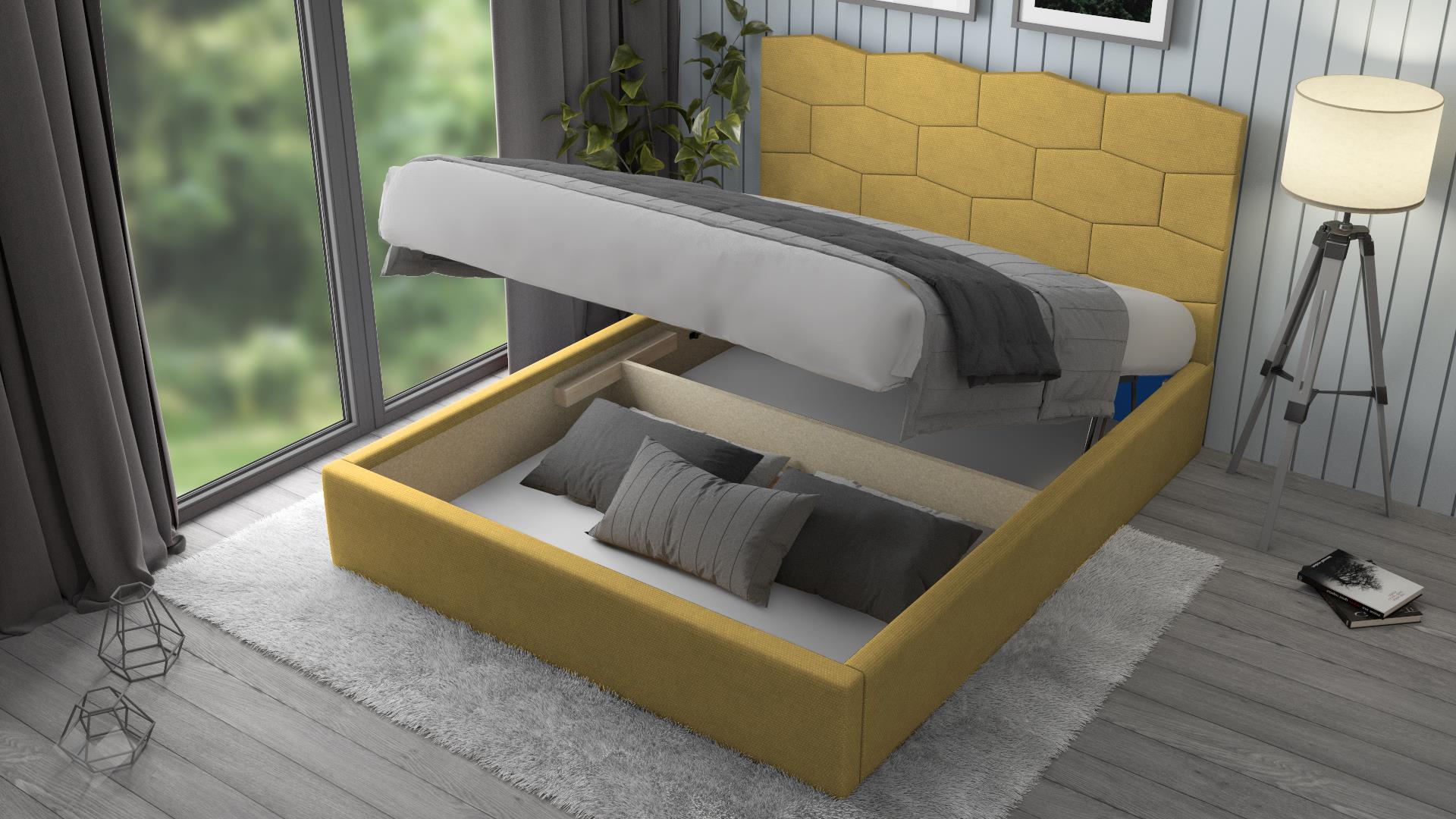 Спалнята ти предоставя необходимото пространство за спокоен и комфортен сън. Тя е подходяща за матрак с размер 160/200 см. Таблата е с оптимална височина, мека и удобна за облягане при четене на книга или гледане на телевизия. Включеният повдигащ механизъм повдига матрака и открива широко пространство, готово да побере всички възглавници и завивки, на които все не се намира място. Това е безценно предимство при по-малките жилища, където всеки сантиметър е от значение. Допълнителният делител на подматрачното пространство прави организацията на вещите още по-лесна.