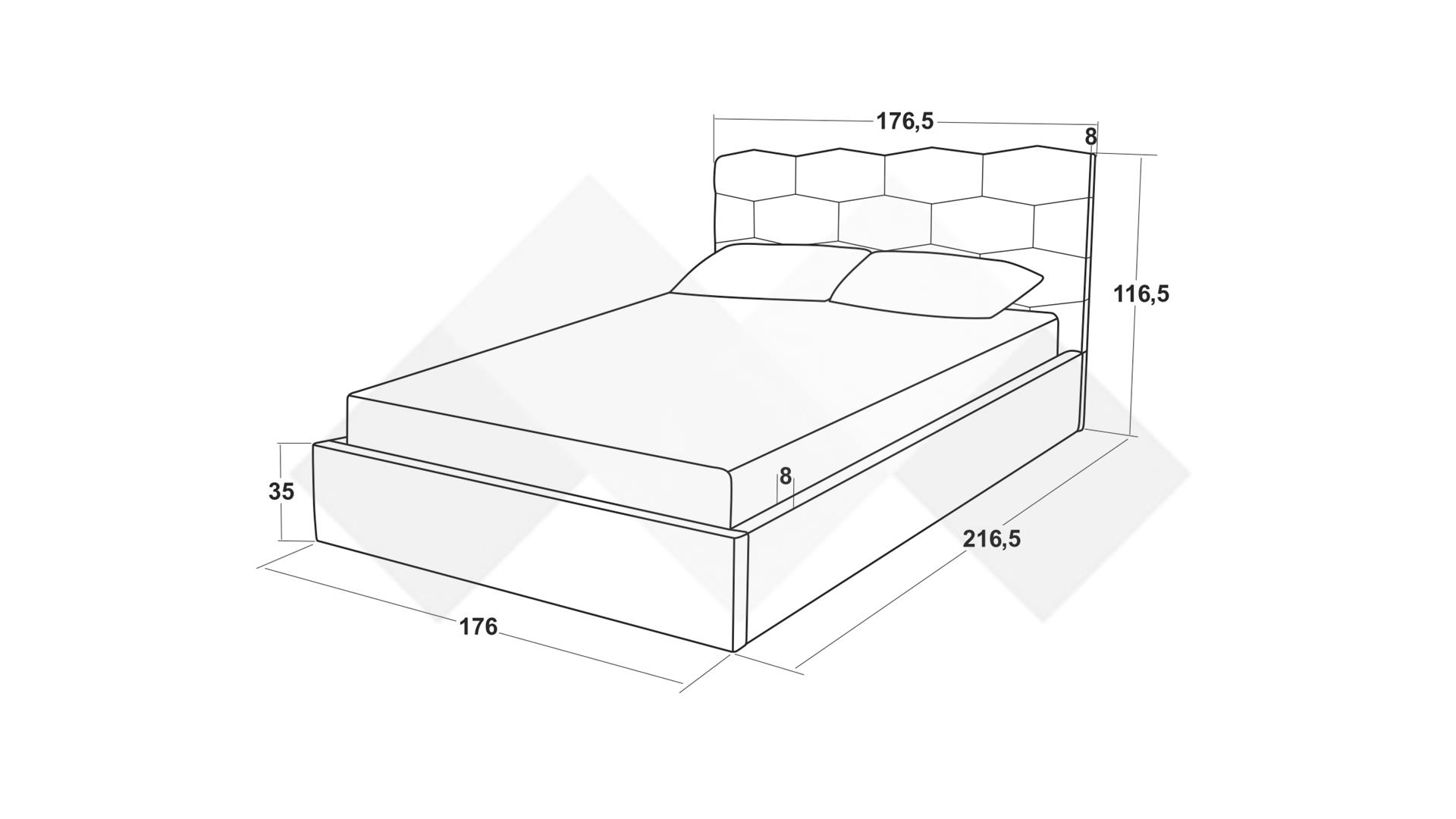 Д: 216.5 см. Ш: 176.5 см. В: 116.5 см.