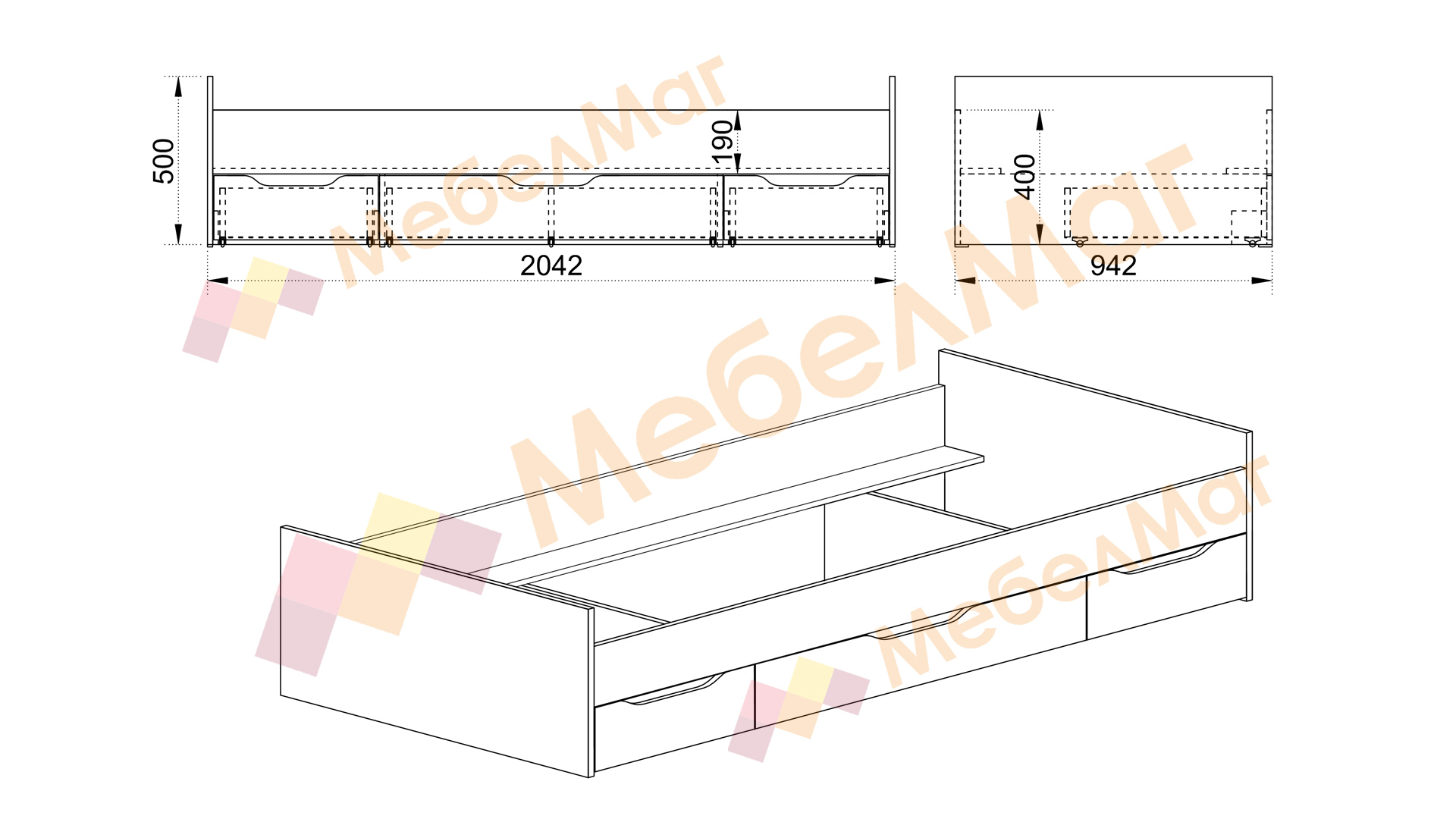 Д: 204.2 см Ш: 94.2 см В: 50 см