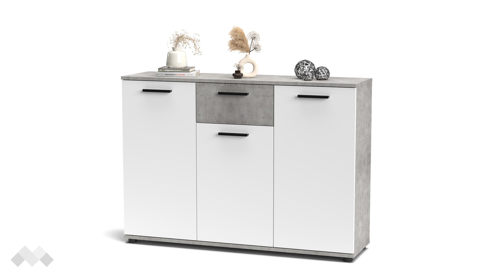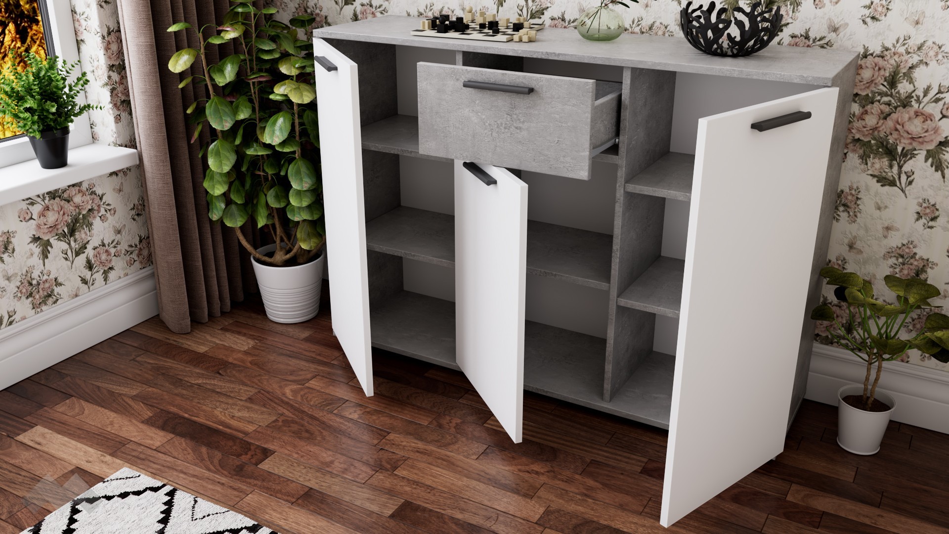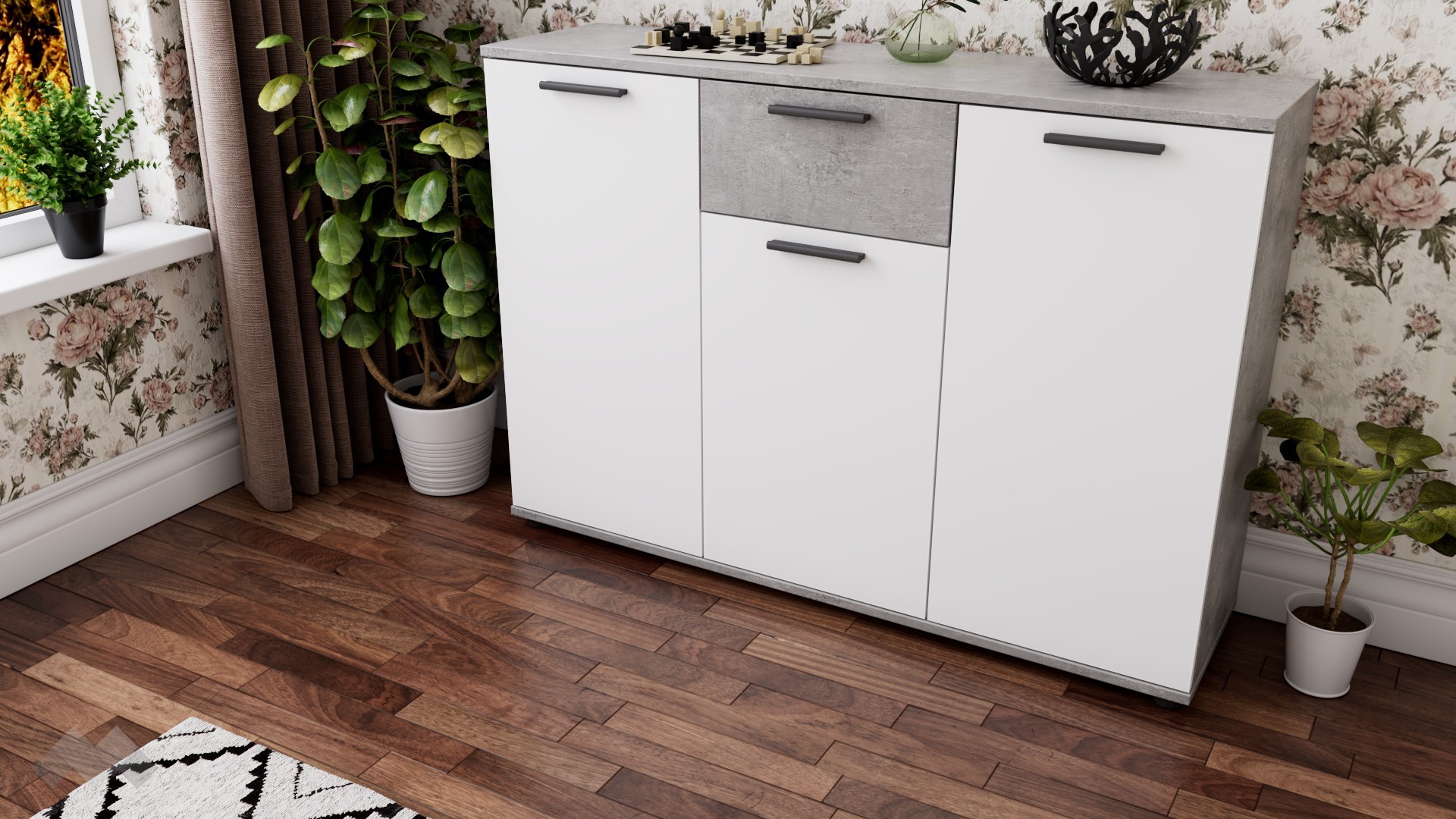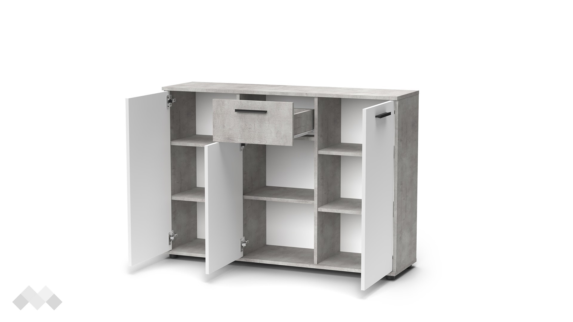 На твое разположение са чекмедже, затворен шкаф с един рафт и два затворени шкафа с по два рафта. Моделът е универсален и ще намери приложение във всяка стая. Можеш да го поставиш в спалнята, където да ти предостави допълнително място за дрехи и бельо, а върху горния плот може да подредиш козметика, аксесоари или ефектна декорация. Скринът може да бъде и чудесно допълнение към всекидневната, където да ти послужи за организиране на всички вещи, за които не намираш място в секцията. Ако имаш нужда от допълнително място за обувки и аксесоари, можеш да го поставиш и в антрето.
