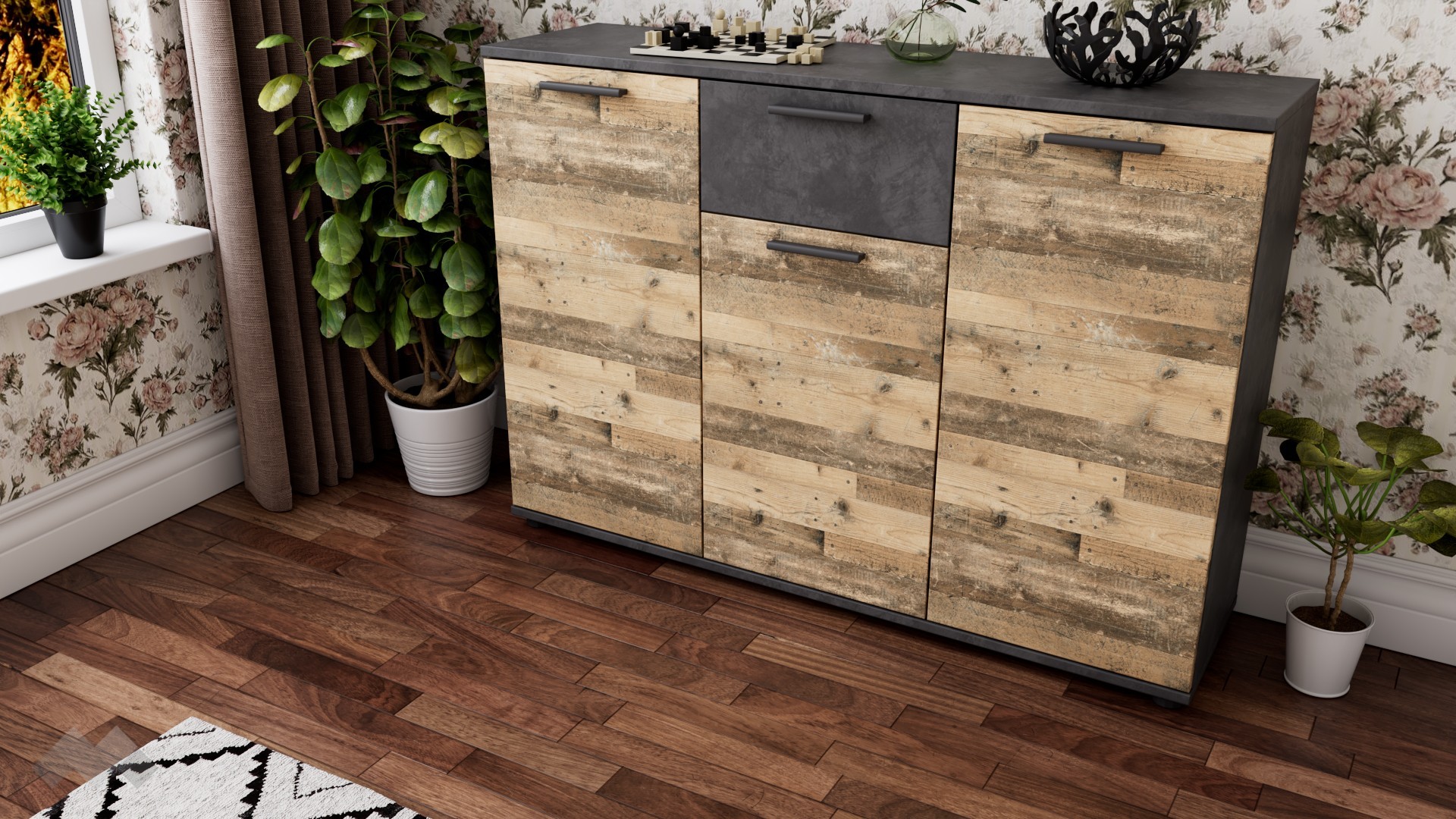 ⭐ Предимства: ✓ чекмедже ✓ 3 шкафа ✓ компактен и практичен ✓ модерен декор ✓ качествена изработка ✓ 16 мм ПДЧ