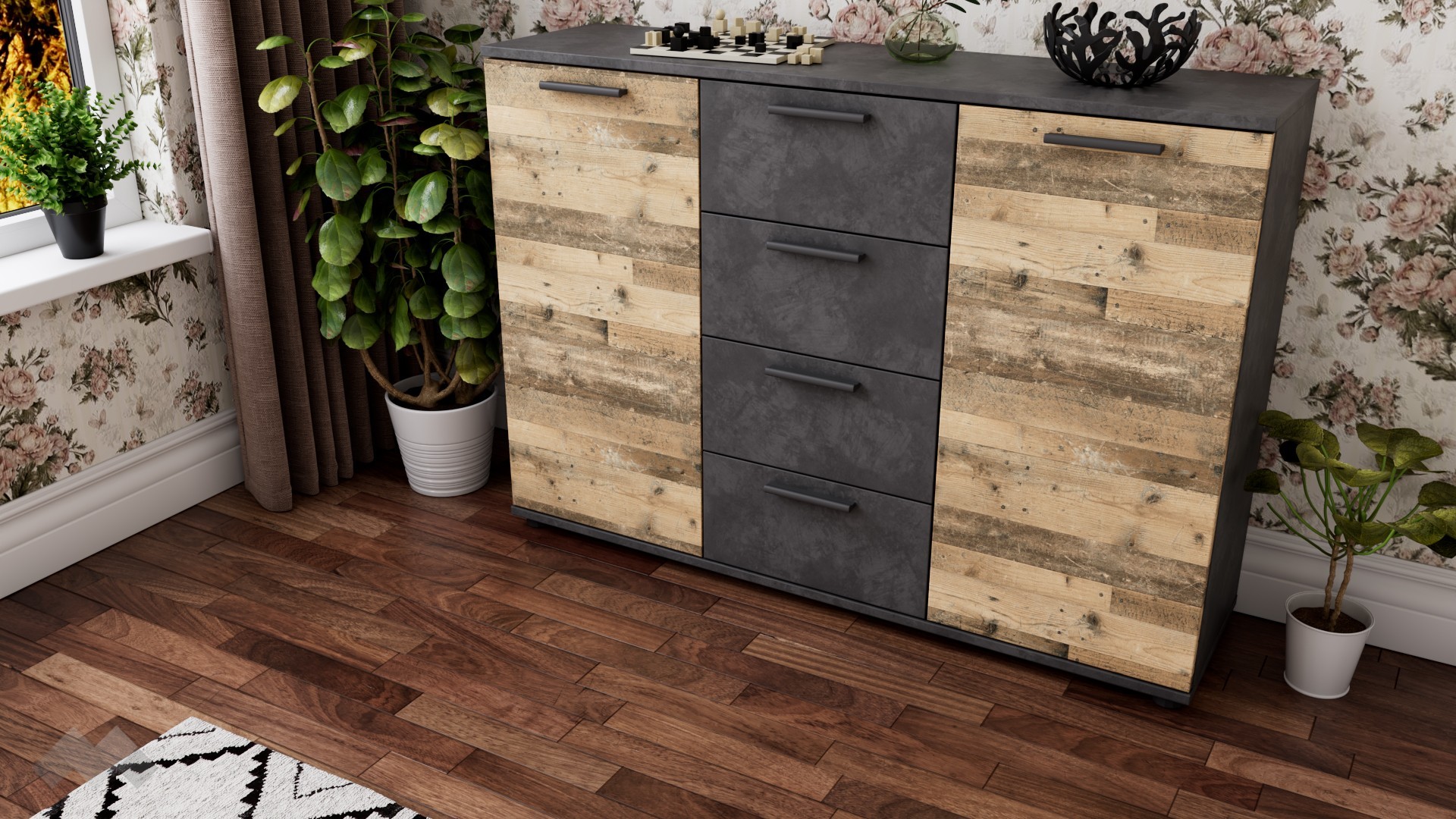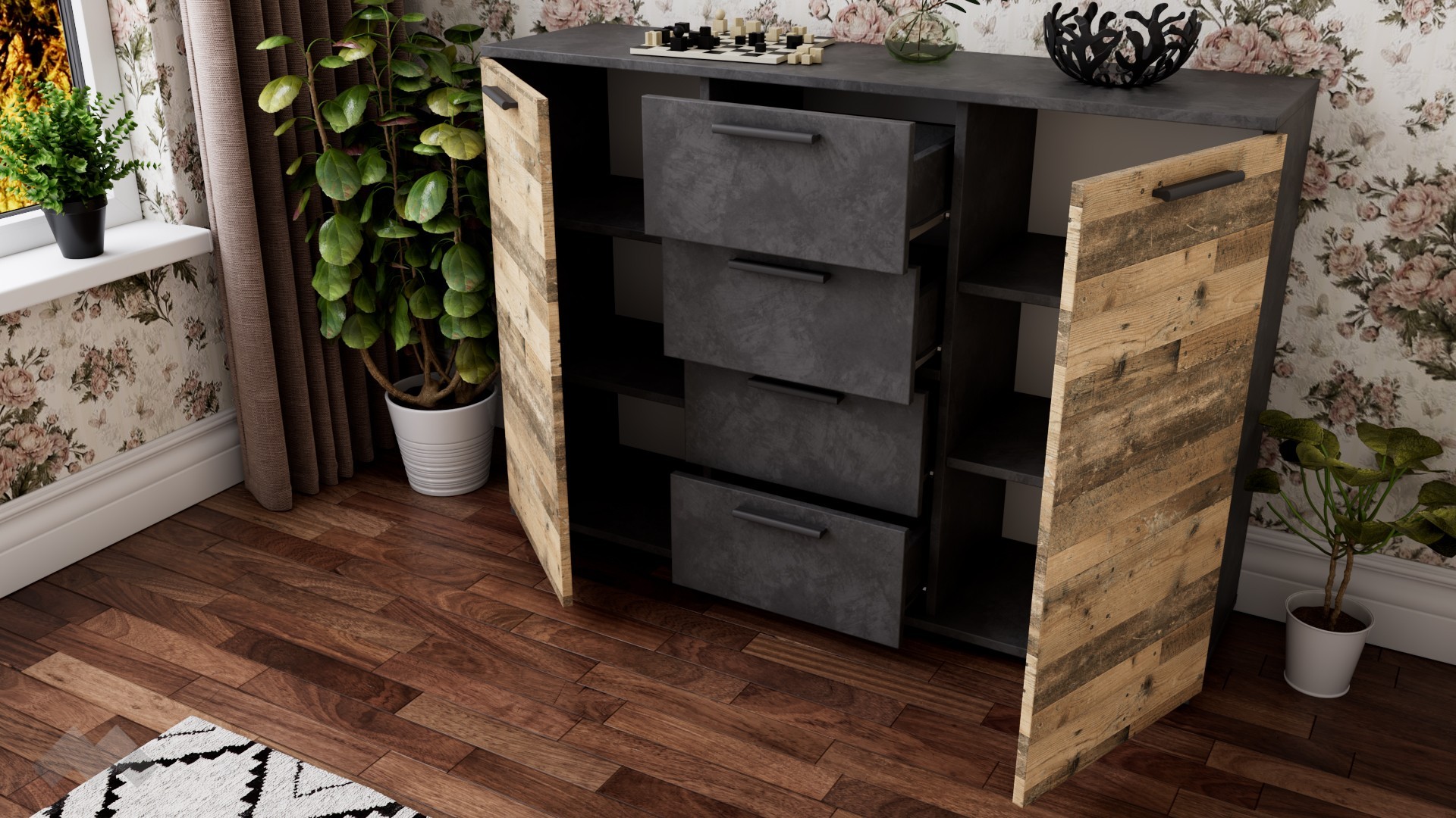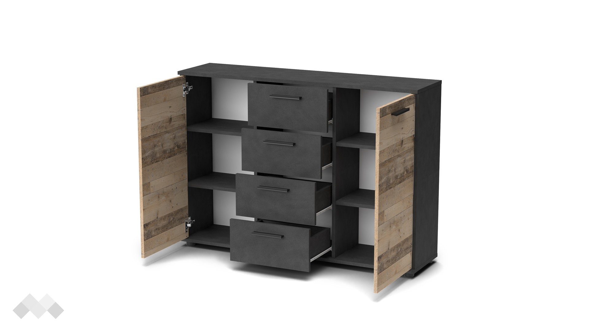 ⭐ Предимства: ✓ 4 чекмеджета ✓ 2 затворени шкафа ✓ компактен и практичен ✓ модерен декор ✓ качествена изработка ✓ 16 мм ПДЧ