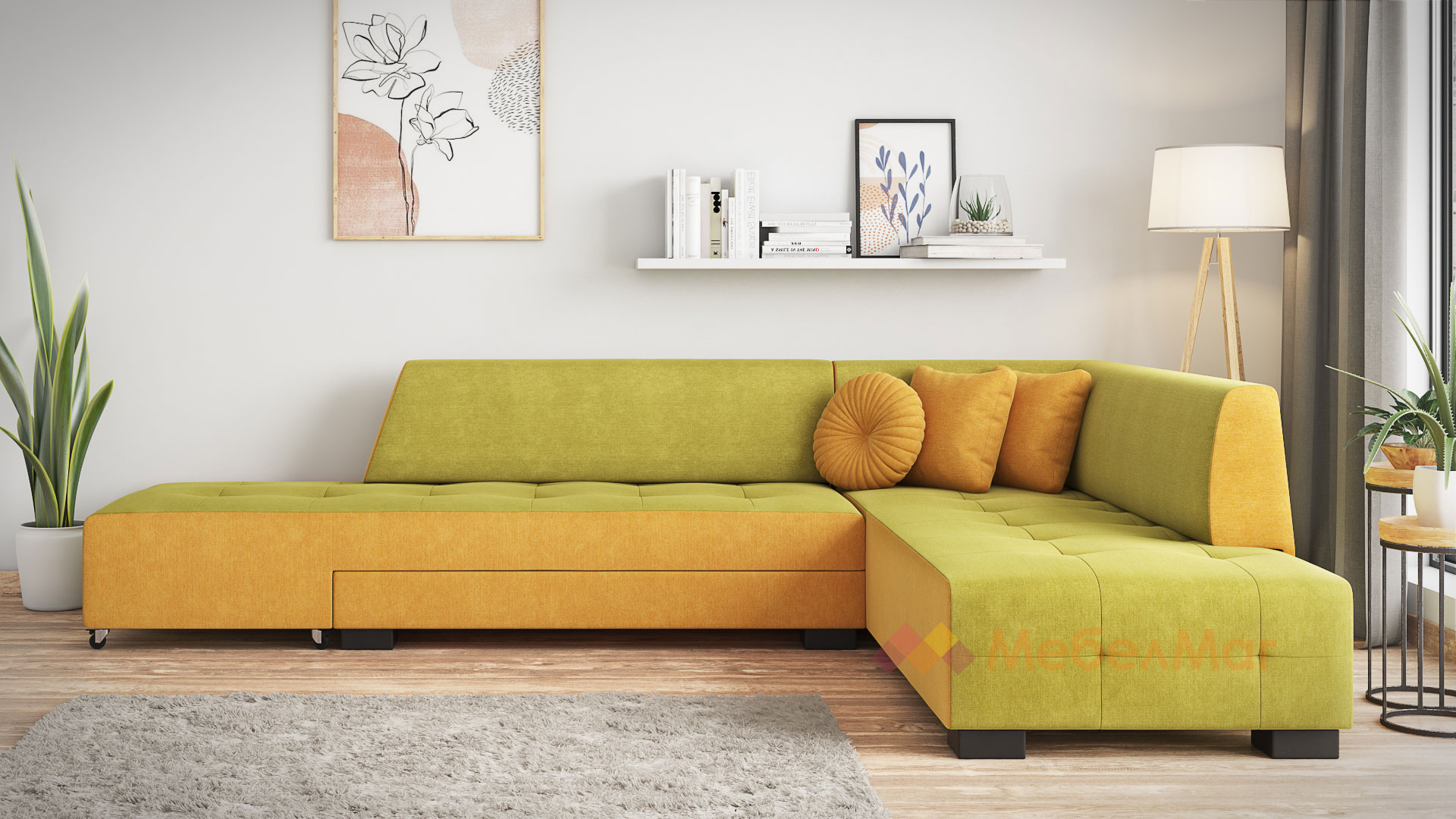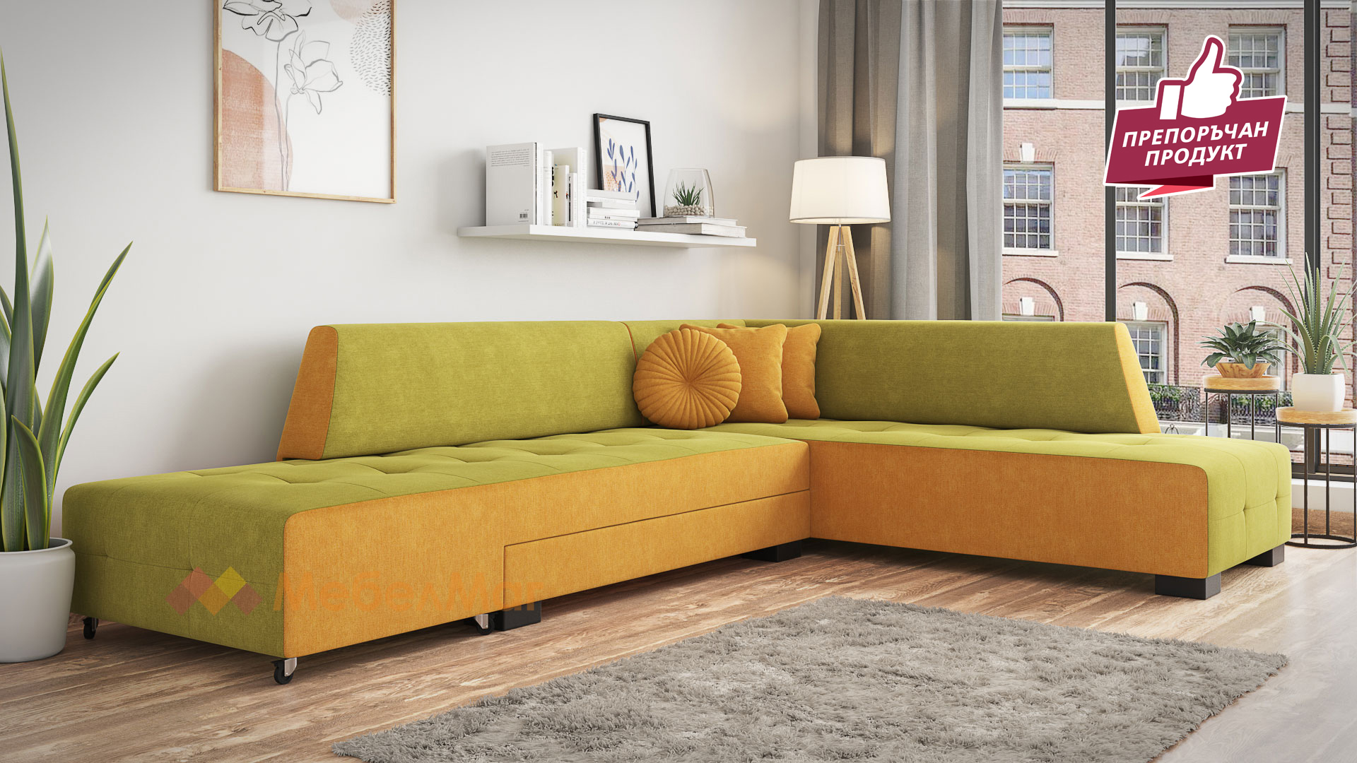 Ъглов диванСохозелено с манго с посока: десен ъгъл