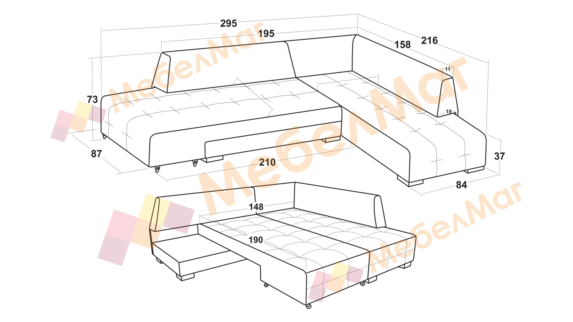 Двете части на дивана са с вградени матраци със средна твърдост, което ги прави удобни и достатъчно големи дори за ежедневно спане. Ако пък се нуждаеш от по-голяма спална площ, достатъчно е да завъртиш едната част на дивана и той се превръща в просторна спалня с размери 148/190 см. В допълнение, до леглото се появява малка масичка, на която да оставиш своята книга или мобилен телефон, така че да са ти под ръка.