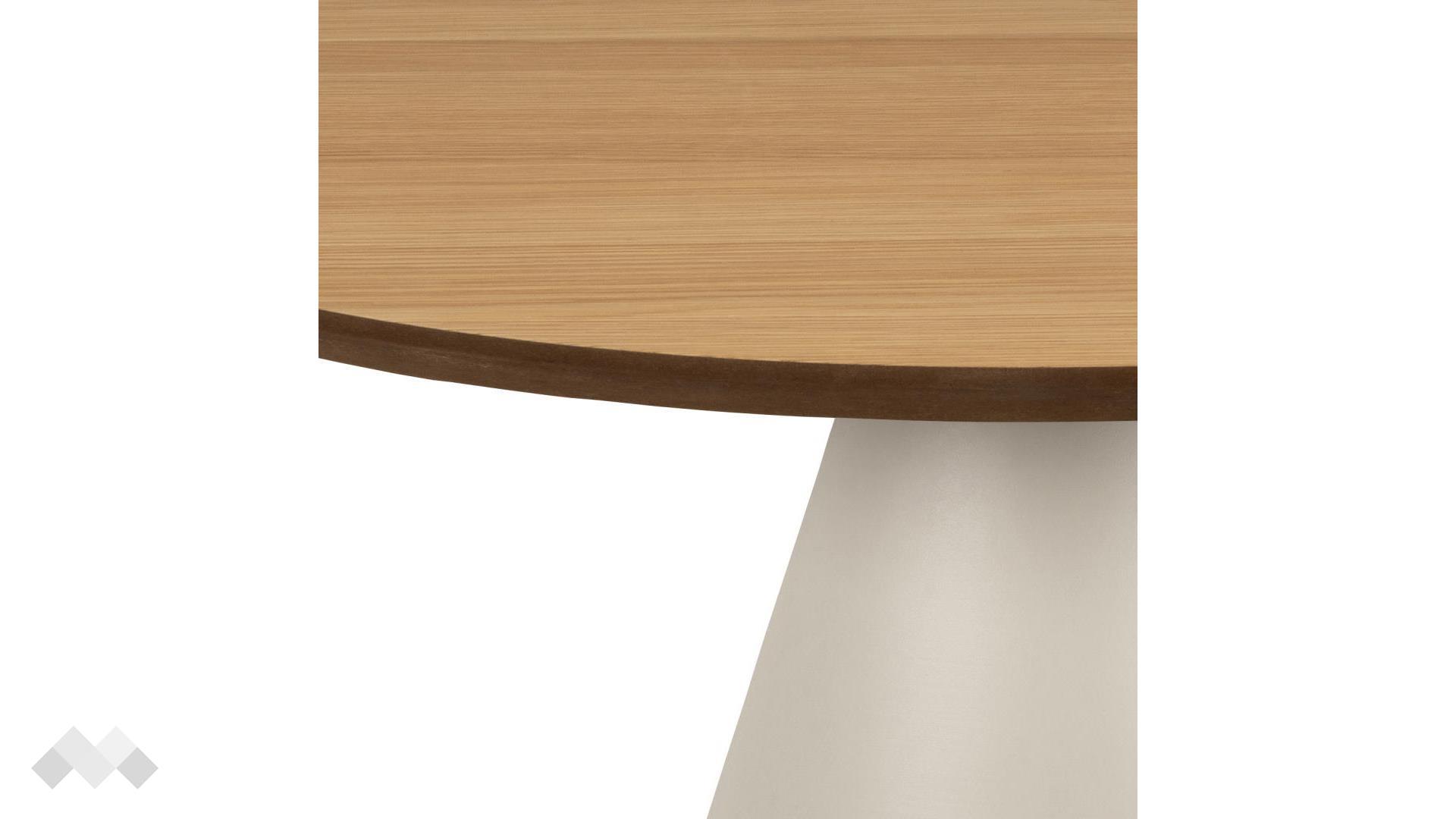 Модерният й дизайн не само подчертава съвременните тенденции, но и осигурява стабилност благодарение на колонната основа, която предлага допълнителна здравина. Кръглата форма добавя хармония и мекота в интериора, създавайки уютна и стилна атмосфера.