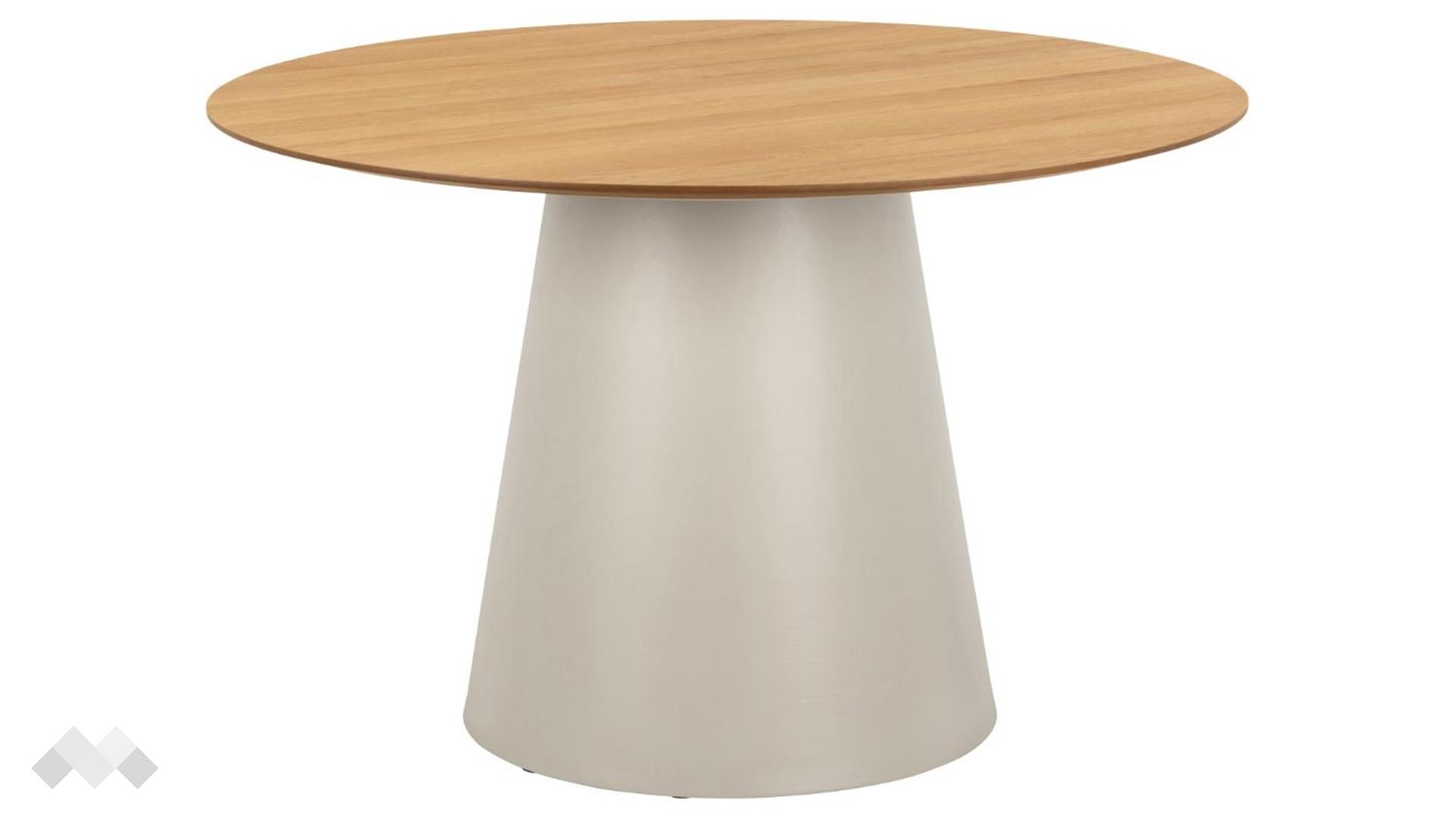 Трапезната маса Соли впечатлява със своя изчистен силует и модерна елегантност. Кръглият ѝ плот от МДФ съчетава устойчивост и стил, а стабилната стоманена колонна основа осигурява здравина и комфорт при използване. Заоблените форми добавят усещане за хармония и финес, превръщайки масата в естествен център на всяка трапезария.