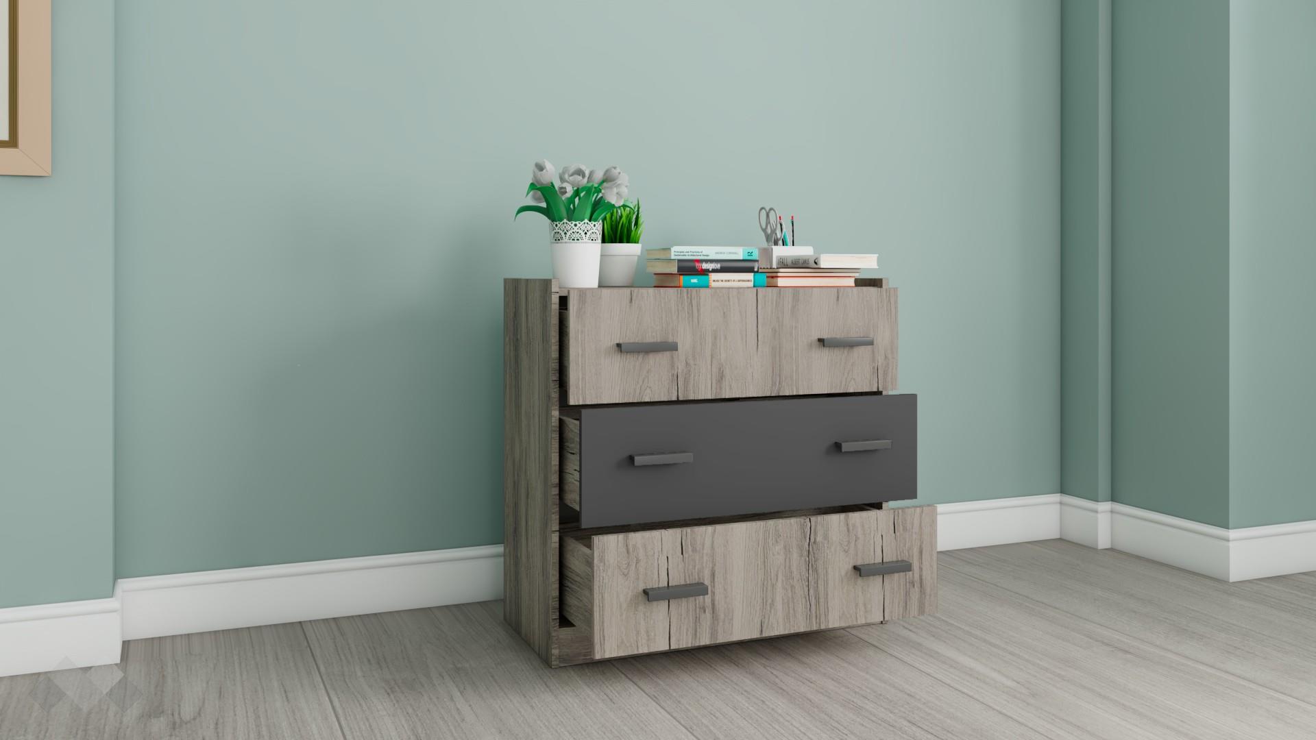 Благодарение на 3-те чекмеджета, разполагаш с достатъчно място за организация на всякакви вещи и дреболии. Плотът е разположен по-ниско, за да можеш да използваш и него като рафт.