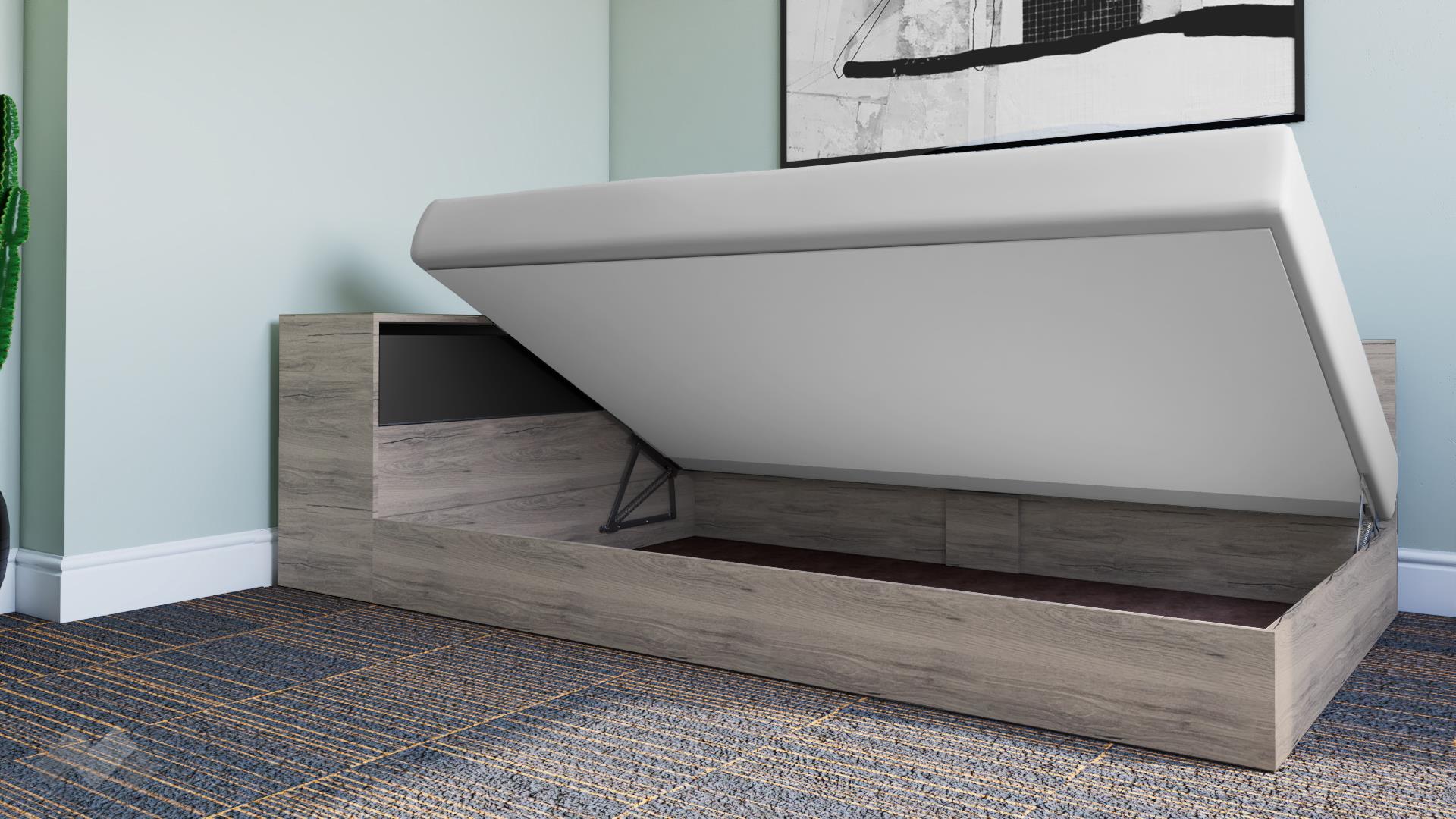 Пристата е с включен механизъм за повдигане на матрака, за да използваш пространството под матрака като допълнително място за съхранение.