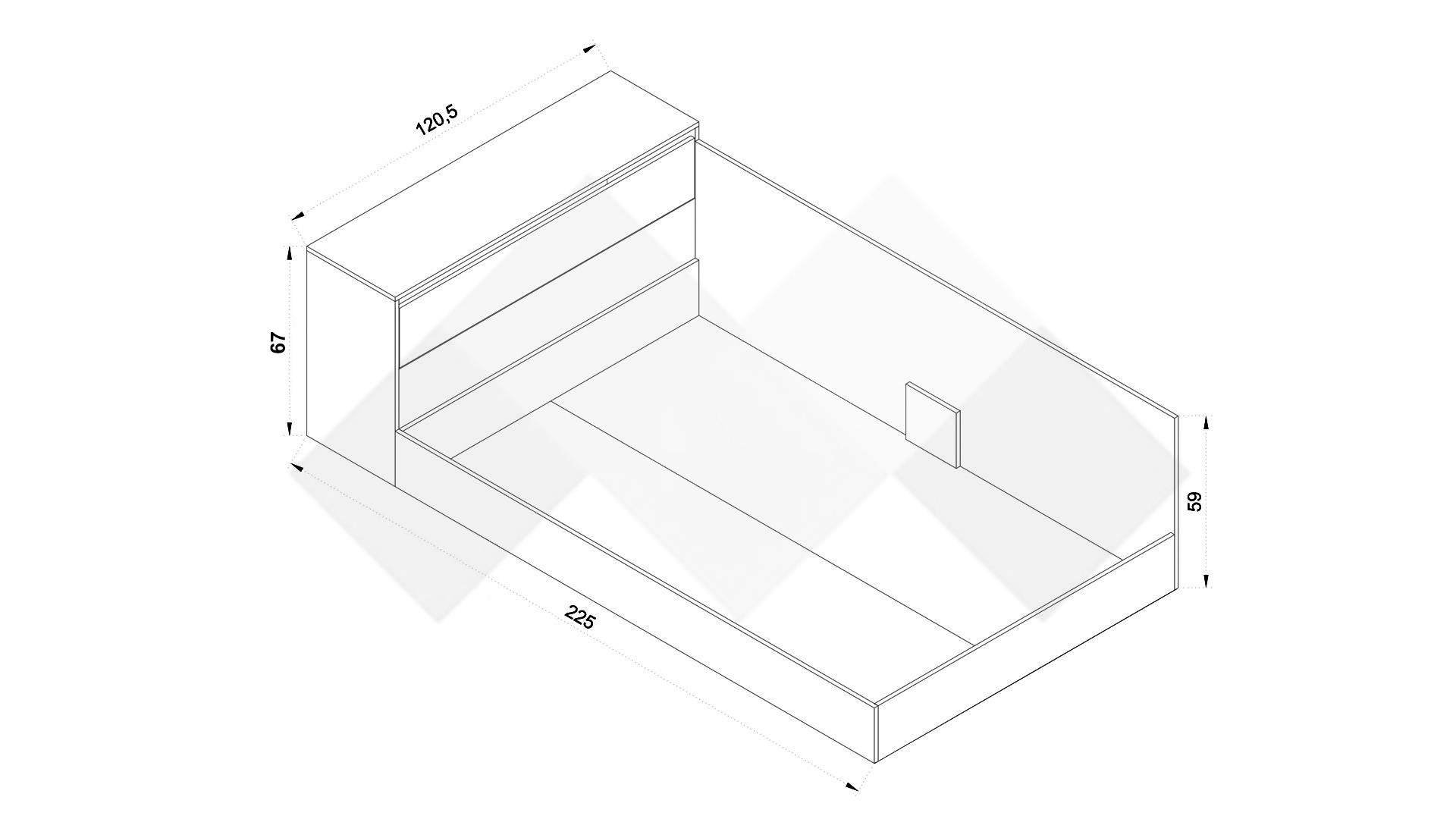 Д: 225 см Ш: 120.5 см В: 67 см