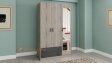 Гардеробът е практичен трикрилен гардероб с 5 обемни рафта, лост за закачалки и две чекмеджета. Има практично разпределение, което ти позволява да подредиш добре всички дрехи и аксесоари. Можеш да използваш рафтовете за съхранение на сгънати дрехи, по-обемни пуловери, завивки или други вещи, на лоста да закачиш всичко, което искаш да бъде готово за обличане, а в чекмеджетата да организираш бельо или аксесоари.