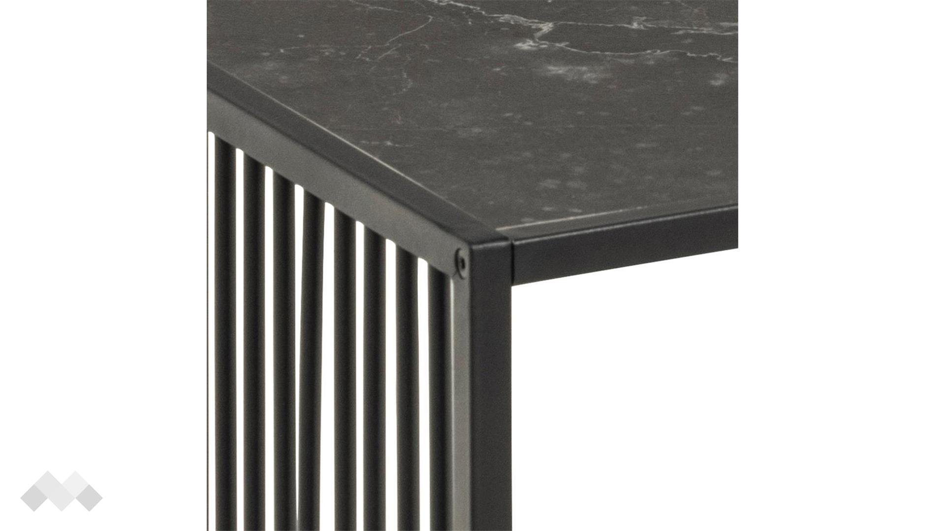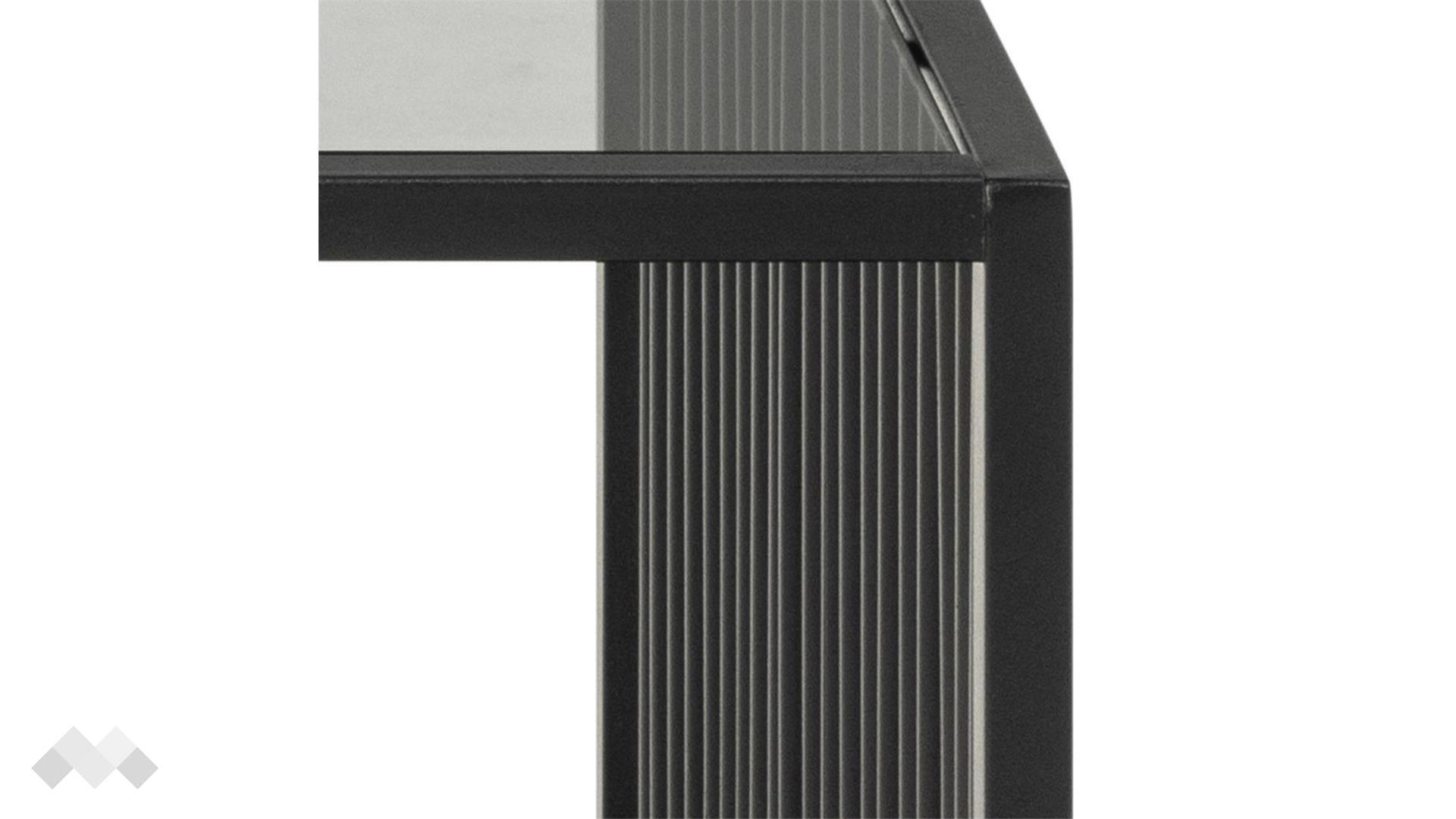 Стабилната стоманена рамка и декоративните вертикални ламели създават динамичен и интересен визуален ефект, който ще привлече вниманието и ще добави характер към помещението. Тази маса е не само функционална, но и стилен елемент, който може да се адаптира към различни интериорни решения.