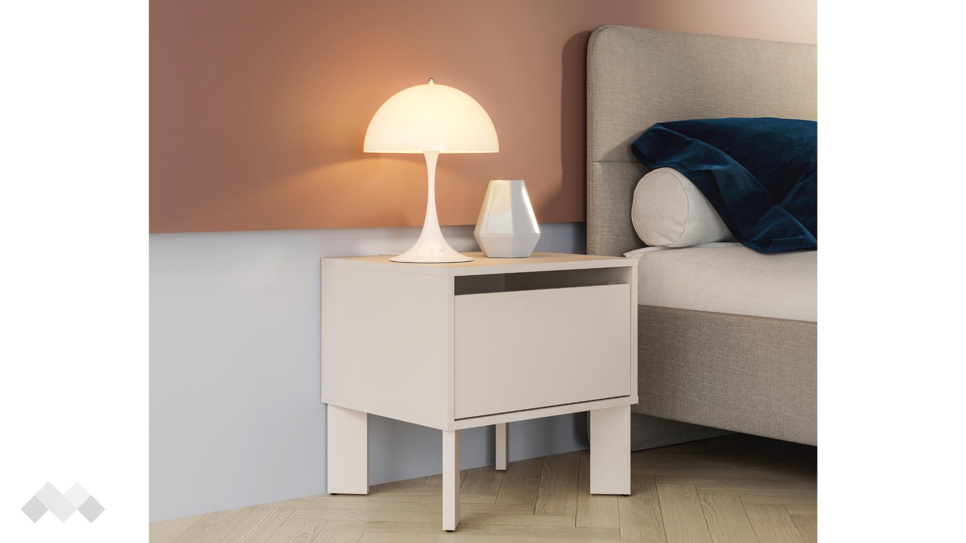 Нощно шкафче Тахо е стилно и функционално допълнение към всяка спалня. Със своя изчистен дизайн и компактни размери, то се вписва лесно до всяко легло, осигурявайки удобно място за най-необходимите вещи.