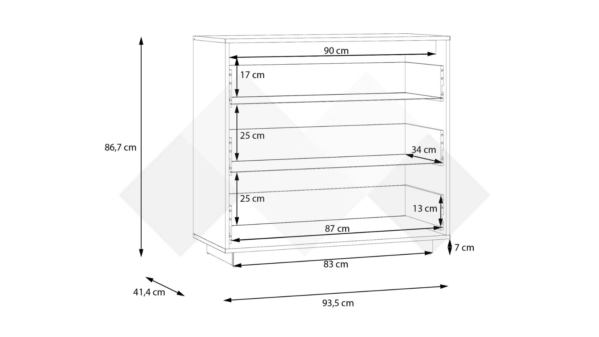 В: 86,9 см Ш: 41,4 см Д: 93,5 см