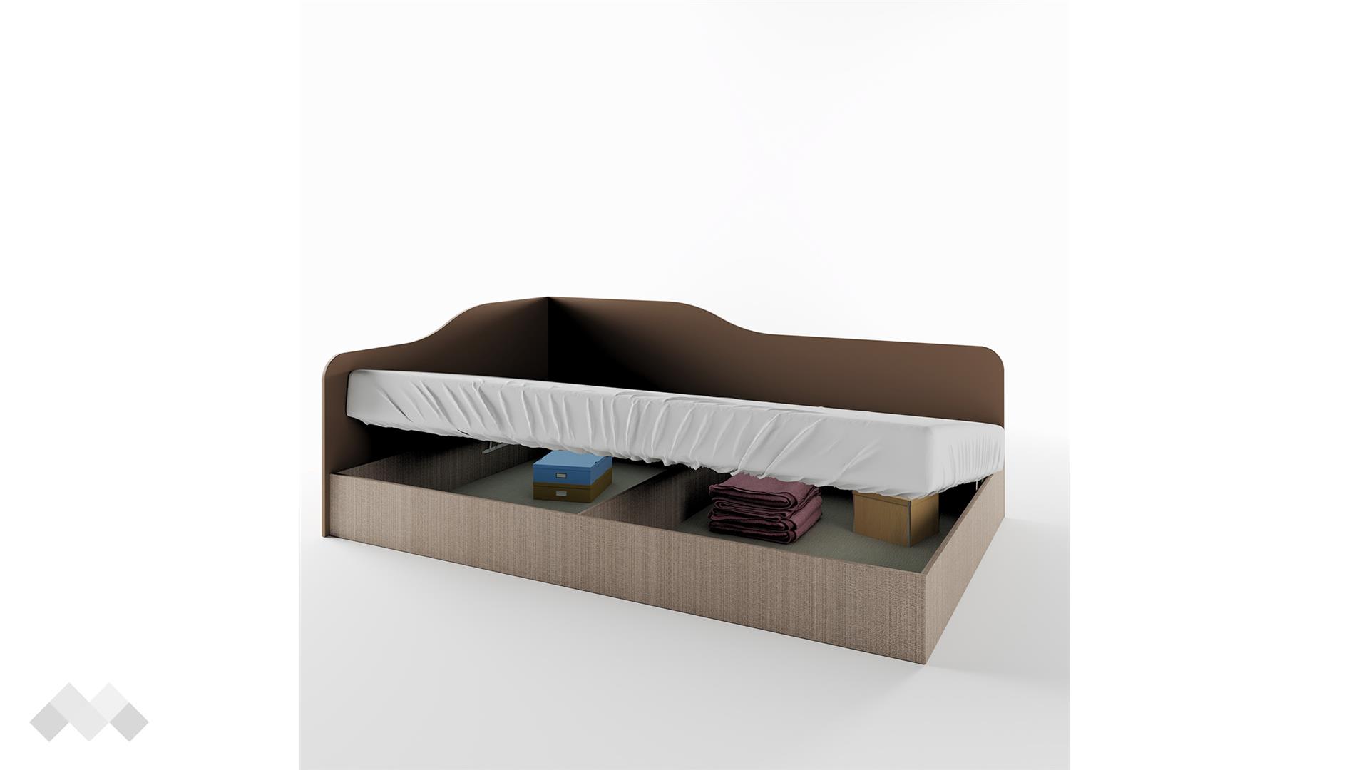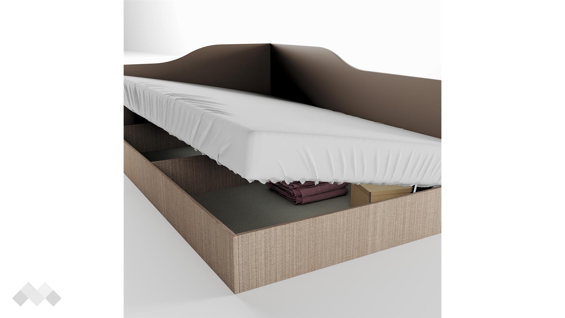 Леглото е подходящо за матрак с размер 120/190 см. Включеният в комплекта повдигащ пружинен механизъм повдига матрака и открива широко пространство, готово да побере всички възглавници и завивки, на които все не намираш място. Така не се налага да закупуваш допълнителни шкафове у дома и пестиш пространство и пари.