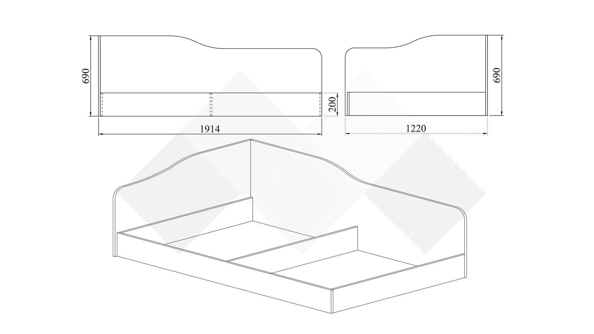 Конструкцията е изработена от 16 мм ЛПДЧ, благодарение на което леглото е здраво, лесно се поддържа и ще ти служи дълго време. Добавените табли осигуряват пълна изолация от заобикалящите го стени, така че когато си легнеш ще усещаш единствено комфорта на матрака и мекотата на завивките. Таблата на леглото можеш да монтираш както от ляво, така и от дясно.