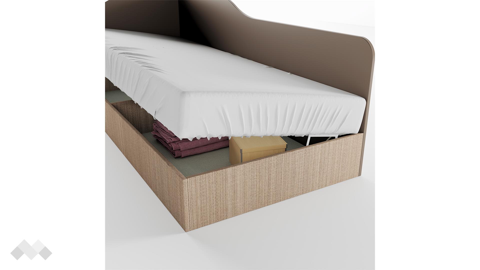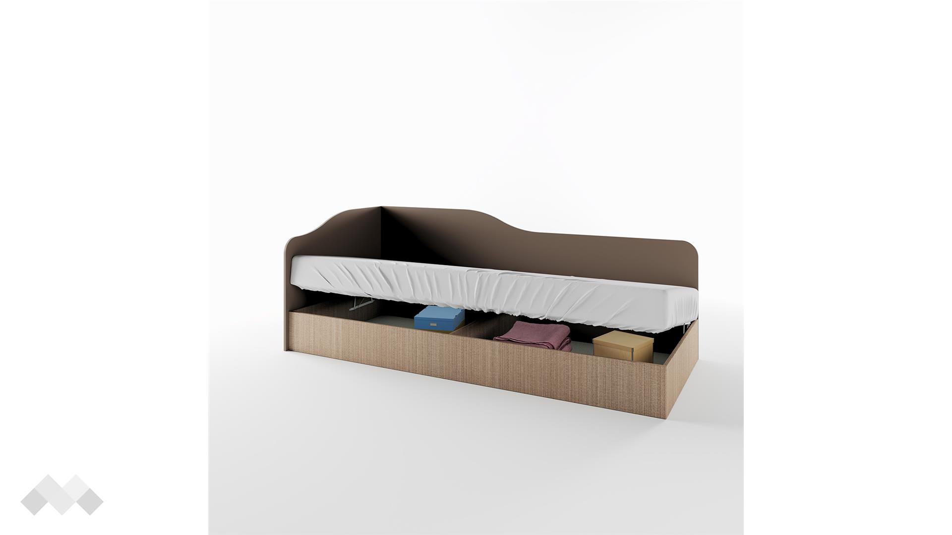 Леглото е подходящо за матрак с размер 82/190 см. Включеният в комплекта повдигащ пружинен механизъм повдига матрака и открива широко пространство, готово да побере всички възглавници и завивки, на които все не се намира място. Допълнителният делител на подматрачното пространство прави организацията на съхраняваните вещи още по-лесна. Така не се налага да закупуваш допълнителни шкафове у дома и ще спестиш пространство и пари.